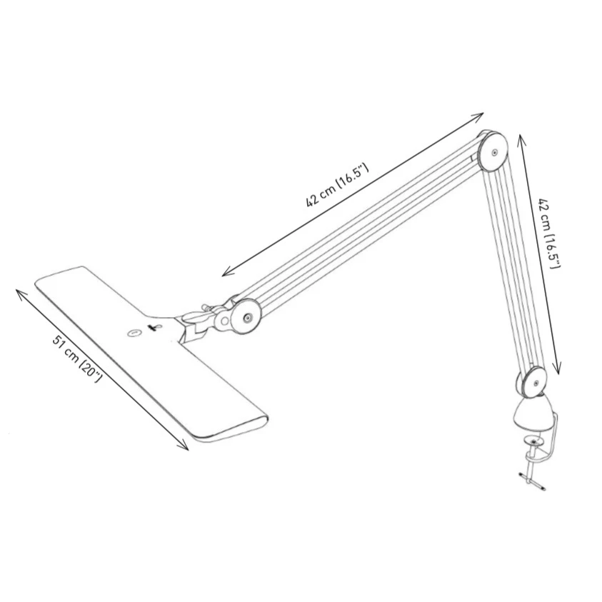 Mit einem unserer Bodenständer ist sie auch hervorragend für große Staffeleien geeignet. Der Arm hat eine lange Reichweite von 112cm (44″) und kann leicht mit einer Hand bewegt werden.