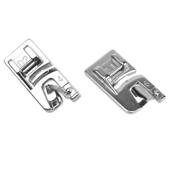 Mit diesem Füßchen wird mit Leichtigkeit ein fein gearbeiter Saum wie in der Konfektion vorgenommen. Die oberhalb des Fußes angebrachte Spirale führt den Stoffrand um einen Rollsaum auszuarbeiten. Empfohlen für feine und leichte Stoffe, z.B. Brautkleider.
