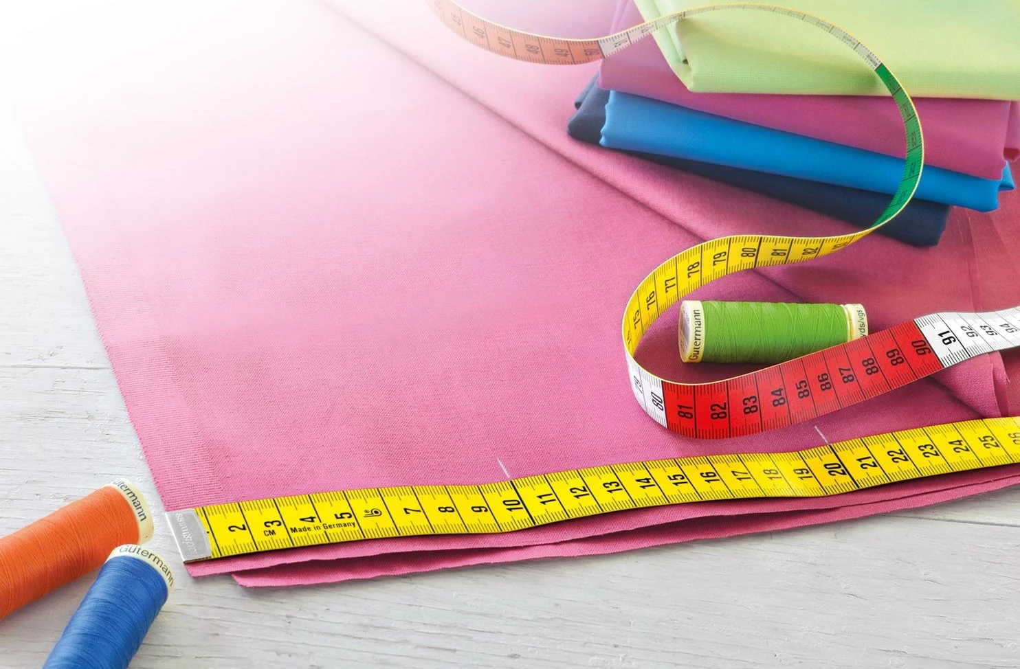 Im Garnset befindet sich zusätzlich ein Maßband mit farblich gekennzeichneten Zentimeter Einteilungen zum schnellen erfassen der Maßangaben.