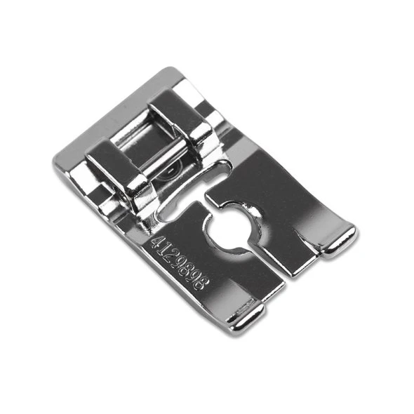 2. Den Nähfuß absenken und nähen. Der separat erhältliche Faden/Bandführer (412 55 44-45) führt die Litze während des Nähens.