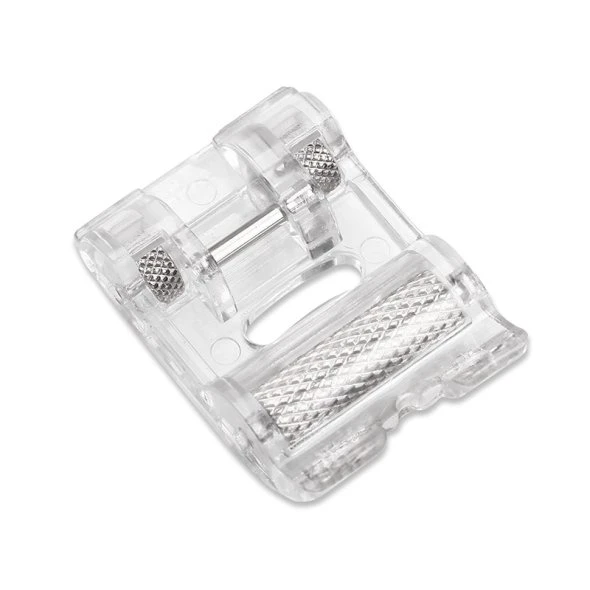 Wie der Name verrät, hat dieser Fuß Rollen und rollt damit über dicke Säume und unebene Oberflächen. Ideal zum Nähen von schwerem und dickem Material. Die Rollen gleiten über das Nähgut zwischen Fuß und Transporteur und gleichen Unebenheiten aus. Zusätzlich ist der Fuß beim Nähen von Kunstleder und Vinyl eine echte Erleichterung.