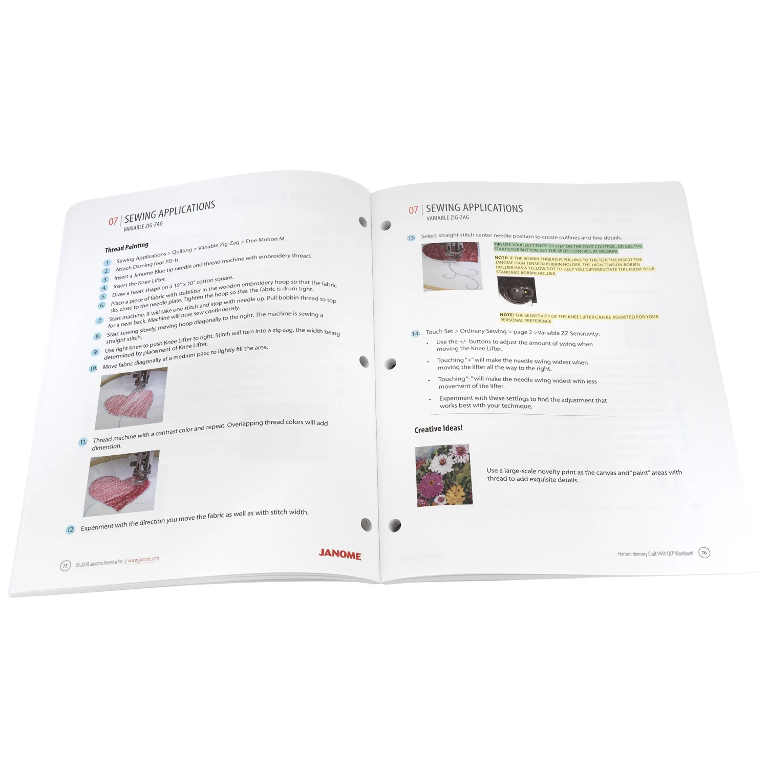 Das Workbook macht Sie mit allen Funktionen vertraut machen, denn bekanntlich ist der beste Weg um eine Maschine kennen zu lernen, ist das Nähen.