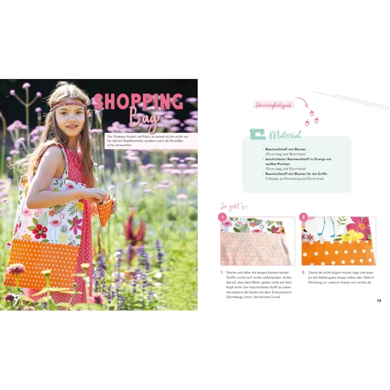 Vorgestellt werden 25 trendige und glitzernde Nähprojekte – von der Pyjamahose bis zum Turnbeutel – die richtig Spaß machen. Zahlreiche Abbildungen, ausführliche Schritt-für-Schritt-Anleitungen und hilfreiche Tipps & Tricks lassen die ersten Probestunden an der Nähmaschine mit Webware, Jersey und Glitzereffektstoffen garantiert zum Erfolg werden. Im Handumdrehen entsteht so Genähtes in frischen Designs und mit Liebe zum Detail – für Kids, Familie und Freunde.