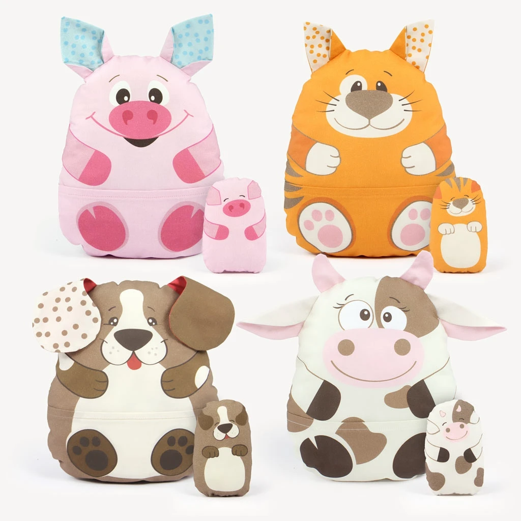 Hier bekommst du ein super schönes Cut & Sew Panel mit verschiedenen Bauernhoftieren. Dabei haben die zum Teil aus dem Kullaloo Sortiment schon bekannten Charaktere wie Kuh „LAURELLA“ oder Katze „LACKY“ eine aufgenähte Bauchtasche, in die passende kleine Tierkinder gesteckt werden können. Insgesamt erhältst du mit einem Panel damit gleich 8 einzelne Nähprojekte, die auf einem Stoffpanel von 80×155 cm gedruckt sind. Ein super Preis-Leistungsverhältnis also, denn hier hat deine Nähmaschine eine ganze Weile zu tun.
