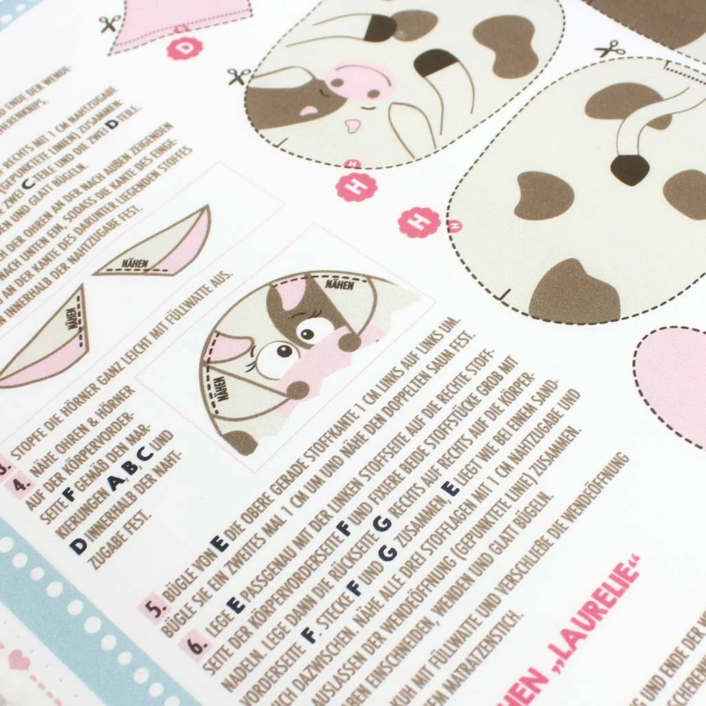 | Die Schnittteile sind bereits auf dem hochwertigen Baumwoll-Stoff aufgedruckt inkl. Nahtzugaben und Anleitung | |