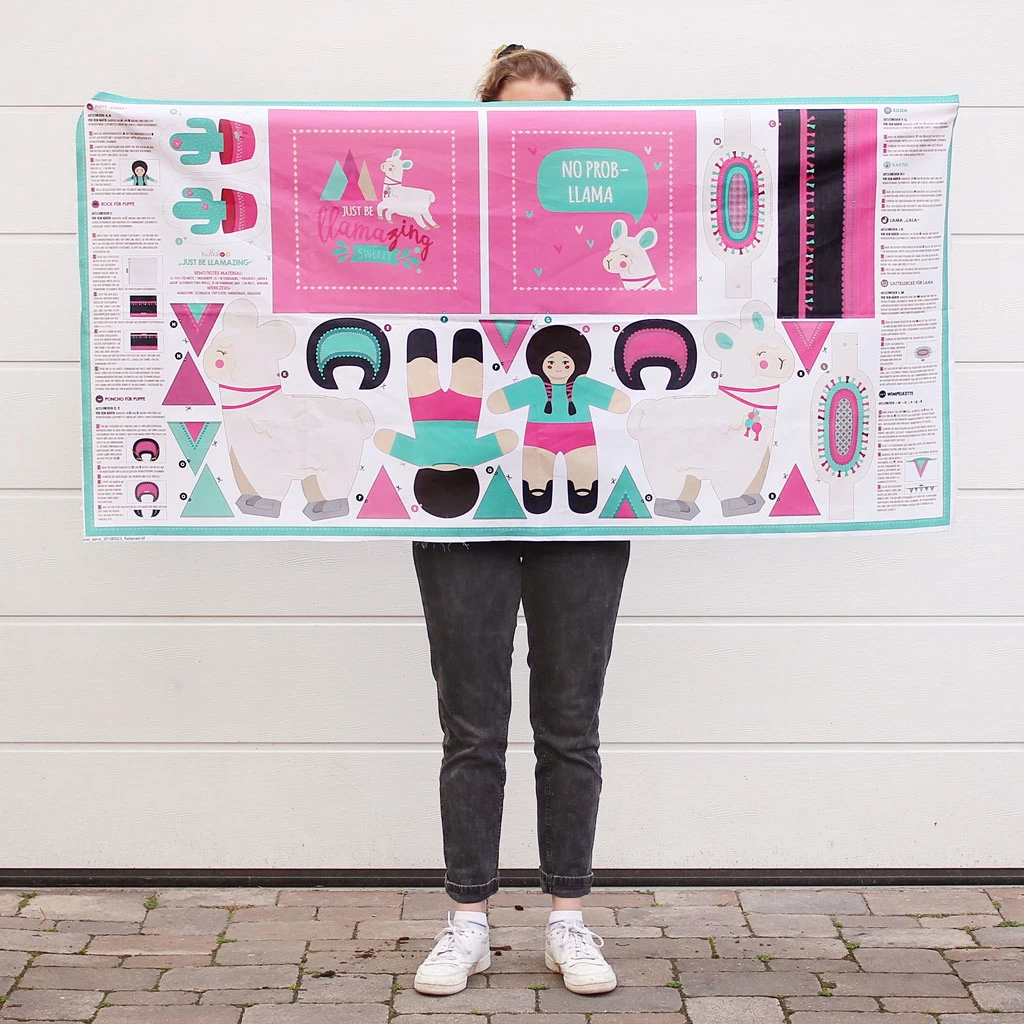 Mit diesem Cut & Sew Stoffpanel kommt Boho-Stimmung in dein Nähzimmer! Unser beliebtes Lama „LALA“ ist dabei Hauptthema, egal ob als Kuscheltier mit abnehmbarer Satteldecke oder als Kissen für Kuschelecke oder Bett. Passend dazu kommt Puppe „ELENA“ mit Rock und wendbarem Poncho daher, Kaktus und Wimpelkette verschönern als Deko deine vier Wände. Ein tolles Set mit insgesamt 8 zueinander passenden Nähprojekten, die auf ein Stoffpanel von 80×155 cm Größe gedruckt sind. Ein tolles Preis-Leistungsverhältnis also, denn hier hat deine Nähmaschine eine ganze Weile zu tun.