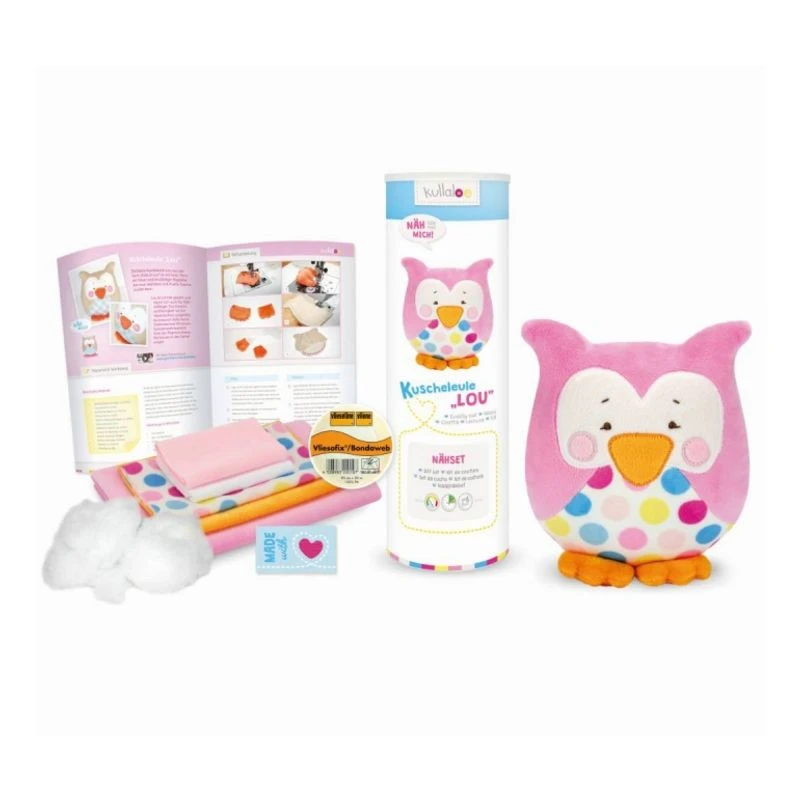 Kullaloo Materialset Kuscheleule „Lou“ (rosa-gepunktet inkl. Füllwatte)
