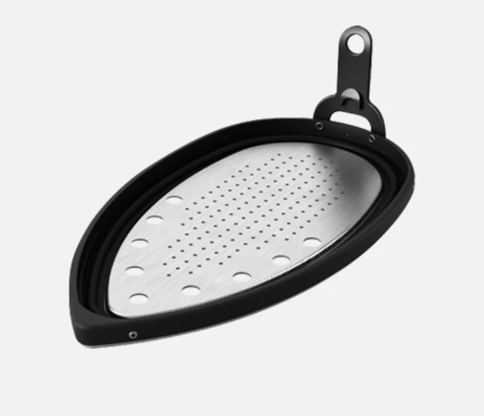 Die Schutzsohle lässt sich ganz einfach auf Ihrem Laura Star-Bügeleisen anbringen. Platzieren Sie zunächst die Spitze des Bügeleisens im vorderen Teil der Schutzsohle und senken Sie anschließend das Bügeleisen ab, um es mittels der dafür vorgesehenen Lasche hinten an der Sohle zu befestigen. Warten Sie etwa 2 Minuten, bis die Sohle die richtige Temperatur erreicht hat, um auch empfindliche Stoffe schonend bügeln zu können.