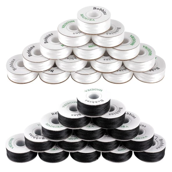 Einfach nur in die Spulenkapsel einlegen und los geht’s! Mit stets der gleichen Garnmenge von 120 m auf den Bobbins werden maximal zwei Bobbins für eine 200 m Spule Rayon benötigt. Der Untergarnwechsel an der Maschine wird insgesamt effizienter. Wer diese Arbeitserleichterung sucht, der wird zu den vorgespulten Bobbins von Madeira greifen.