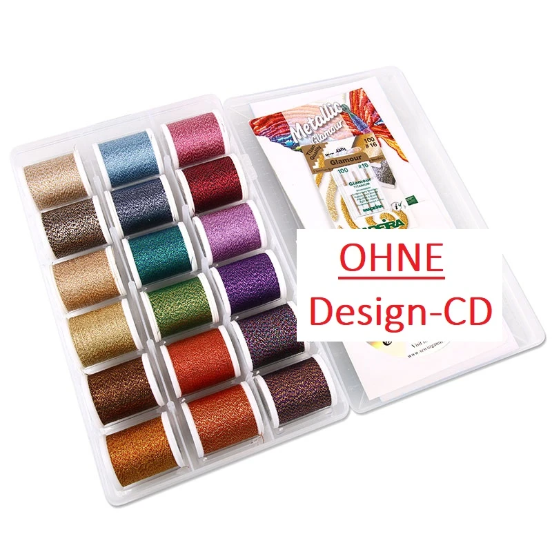 Geeignet für alle Haushaltsnäh- und Stickmaschinen sowie für Coverlock- und Overlockmaschinen. Wir empfehlen die Verwendung der speziellen Glamour-Sticknadel No.90.