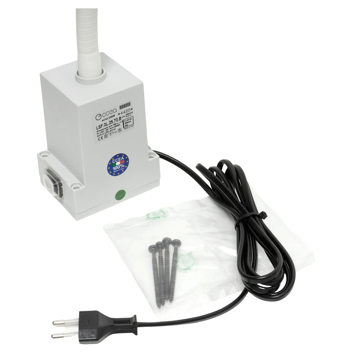 Die Nähleuchte LED CCEA ist ausgestattet mit 3 Hochleistungs-LEDs für blendfreies, diffuses Licht, mit einer gleichmäßigen Streuung.