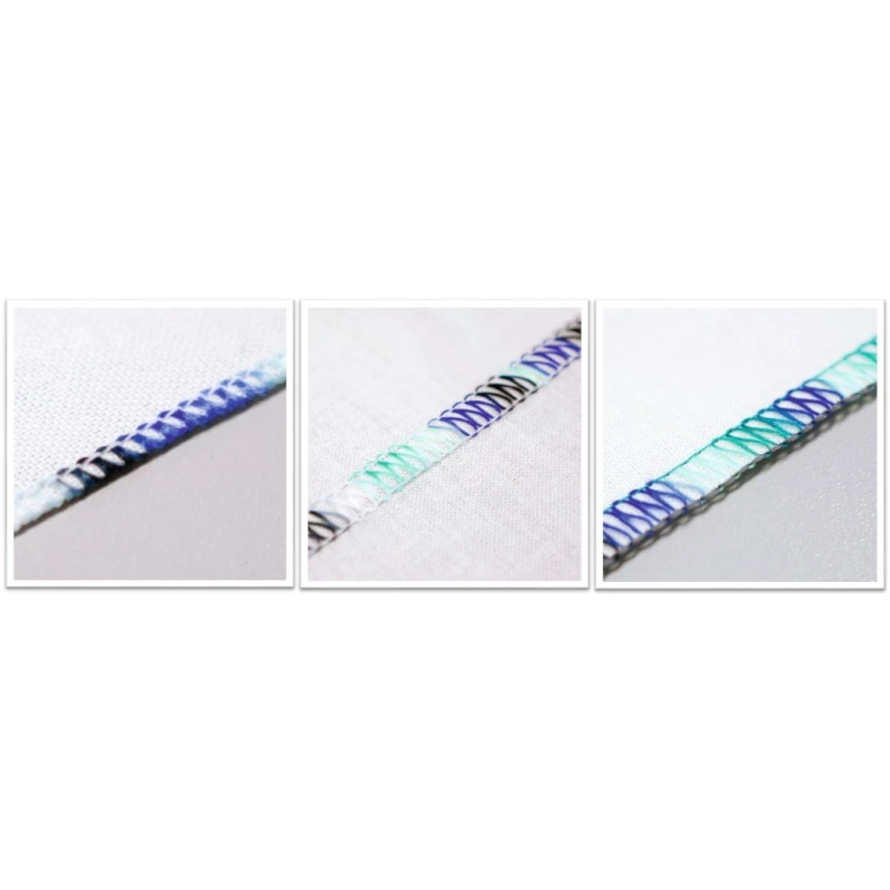 - Bauschgarn, extra dick – Ihre Rollsäume und Wave-Nähte werden noch dichter abgedeckt, für dekorative Zier-Abschlusskanten an allen Materialien.