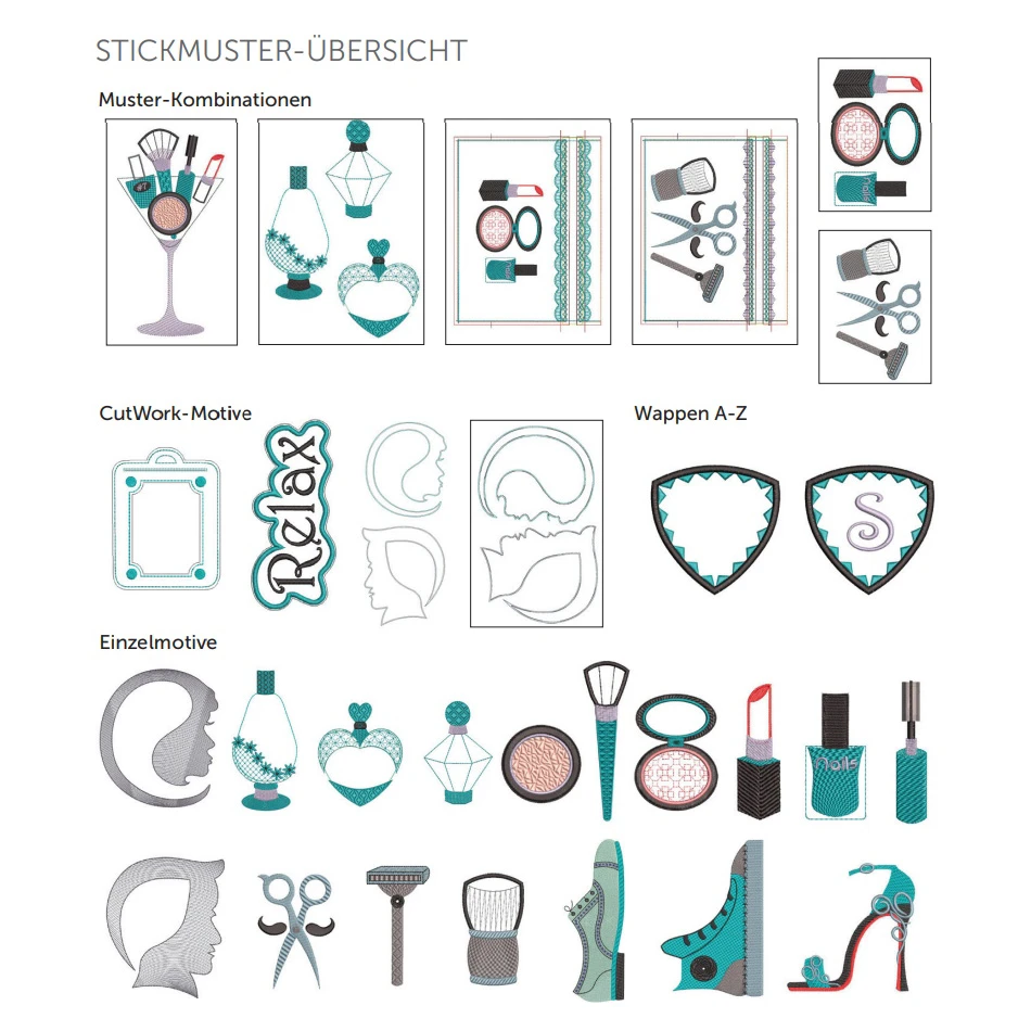 Nähwelt Flach Stickmuster-Collection „Beauty & Wellness“ (30 Stickmuster)