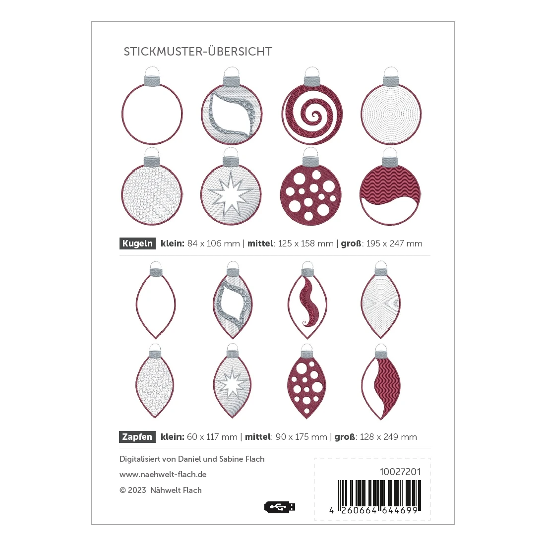 Nähwelt Flach Stickmuster USB „Weihnachtskugeln“
