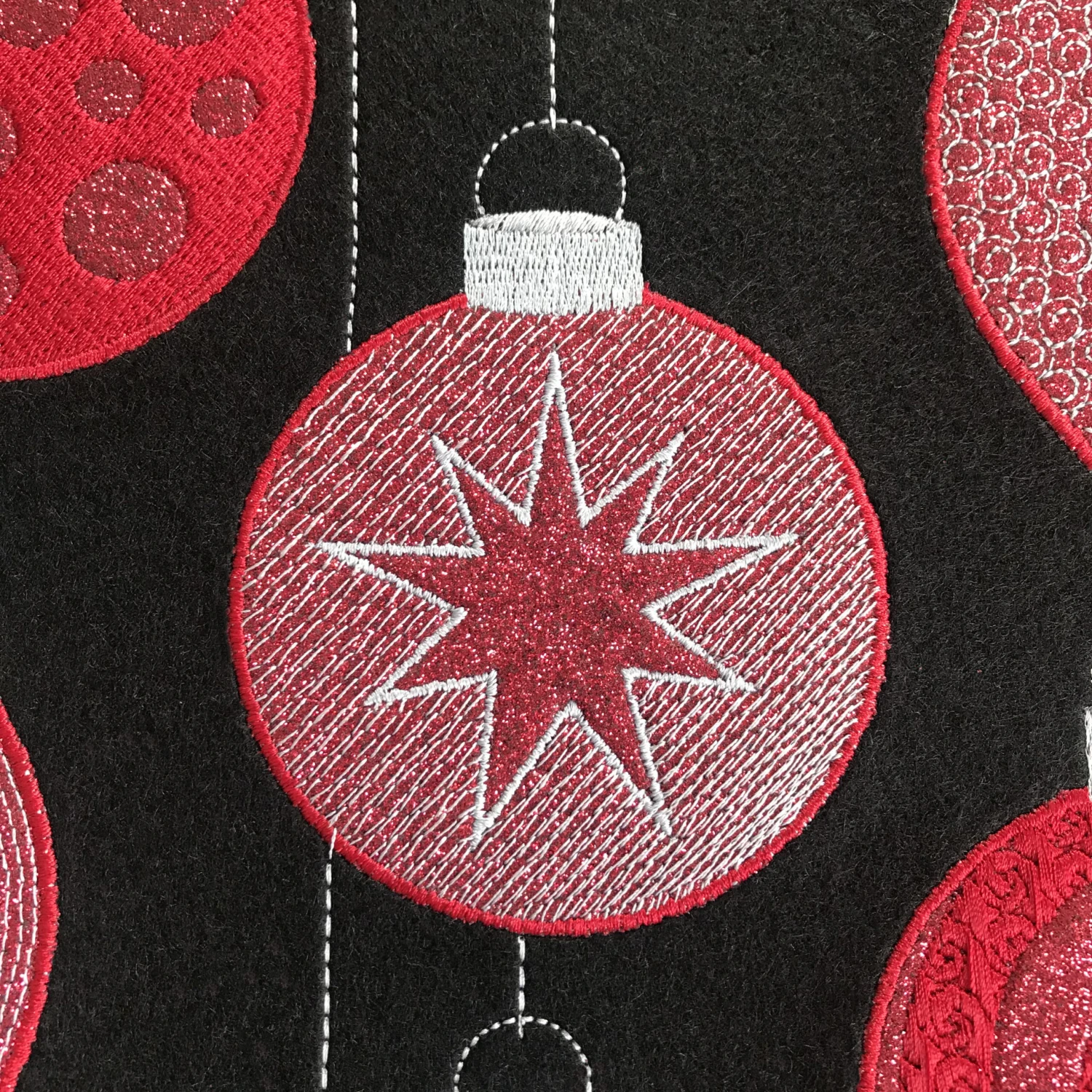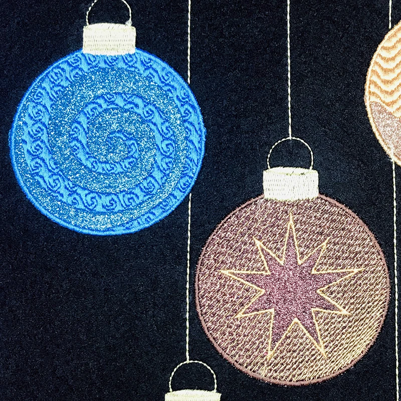 Gestalten Sie Ihre Advents- und Weihnachtsdekoration mit unseren wunderschöne Motiven Zapfen und Kugeln aus der Stickmusterkollektion „Weihnachtskugeln“.