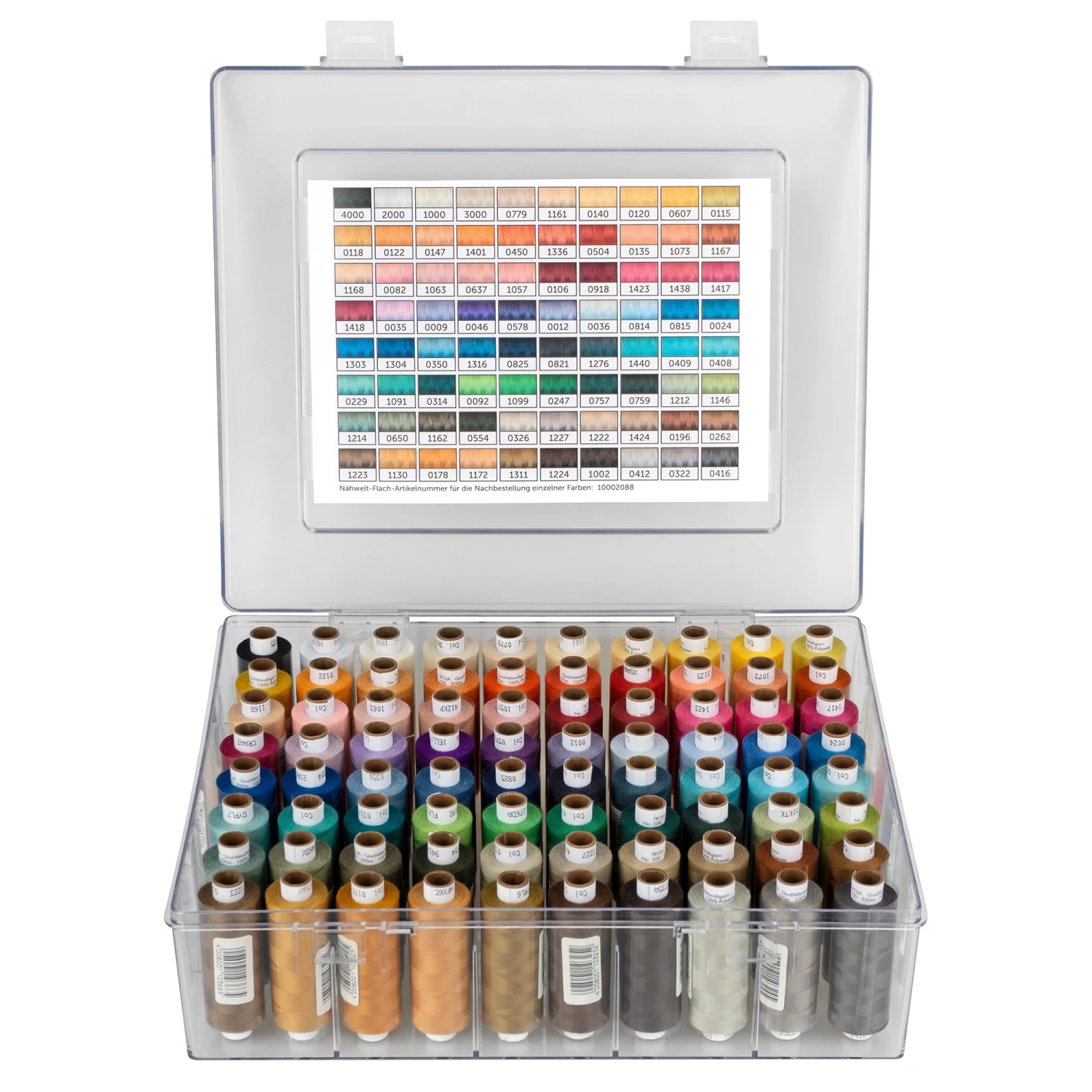 Wir haben 80 Farben in unserer Nähwelt Flach Acryl-Garnbox für Sie zusammen gestellt.