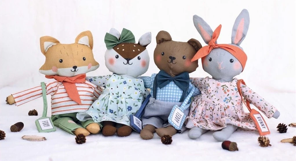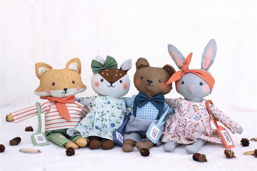 (Die genähten Kuscheltiere sind nicht im Lieferumfang enthalten, dienen lediglich der Anschauung!)