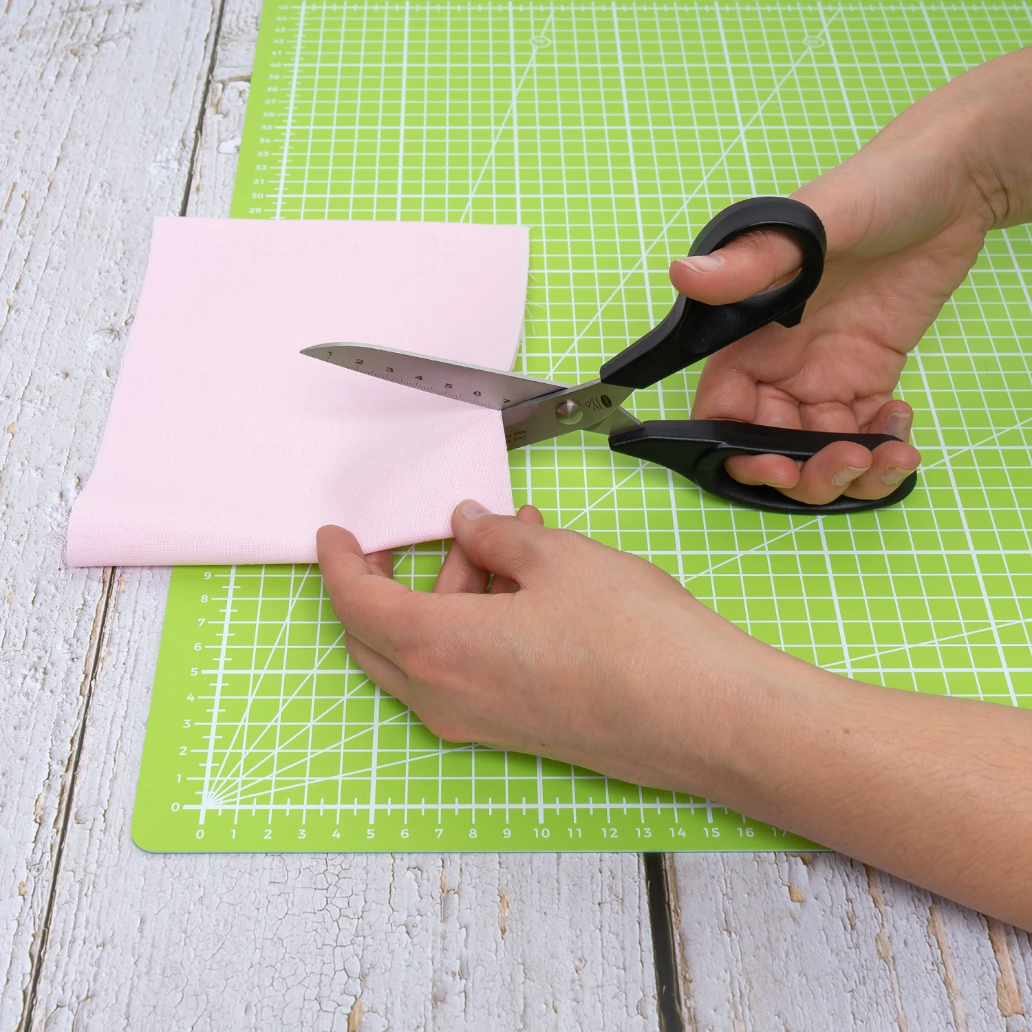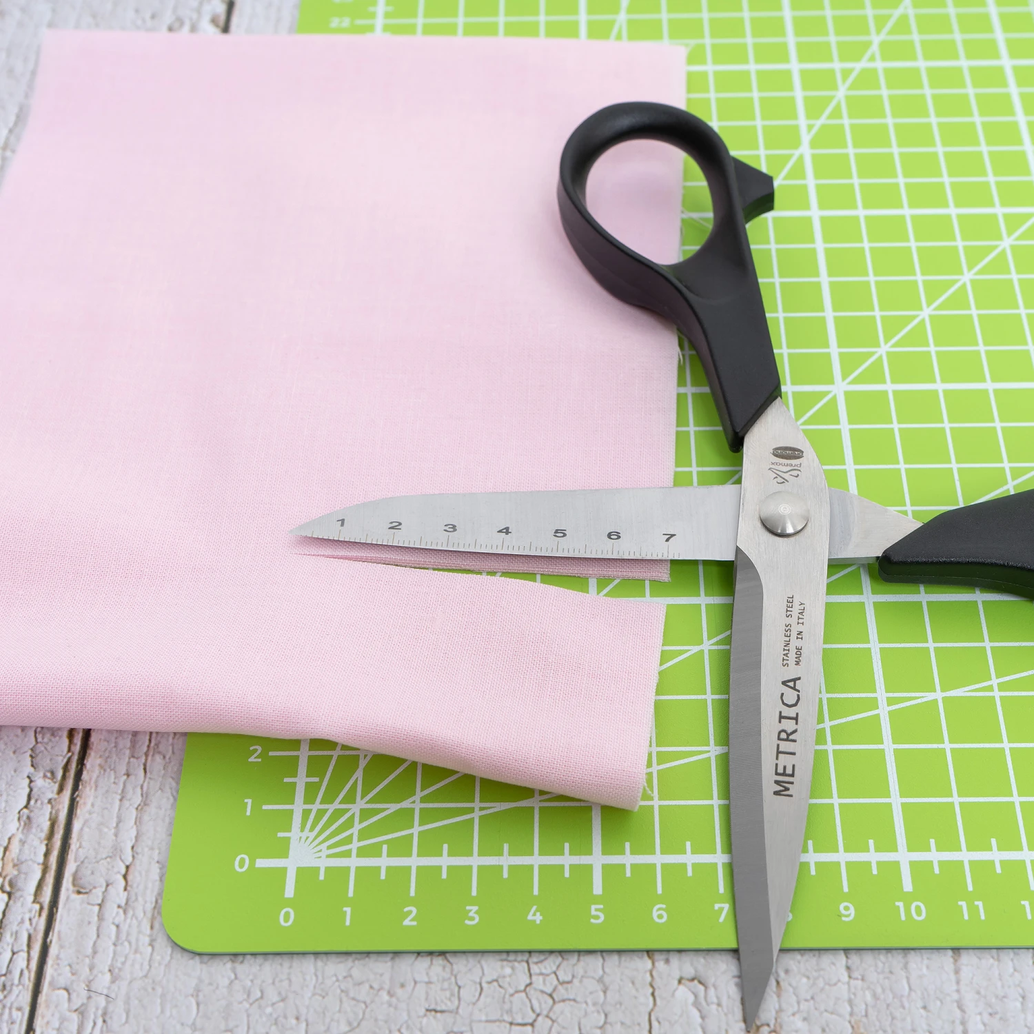 Diese Schere bietet Ihnen, was es sonst international von keinem anderen Hersteller gibt. Die Skalierung ermöglicht Ihnen eine exaktes Schneiden nach cm Skalierung, das Abmessen und Anzeichen auf dem Stoff entfällt.