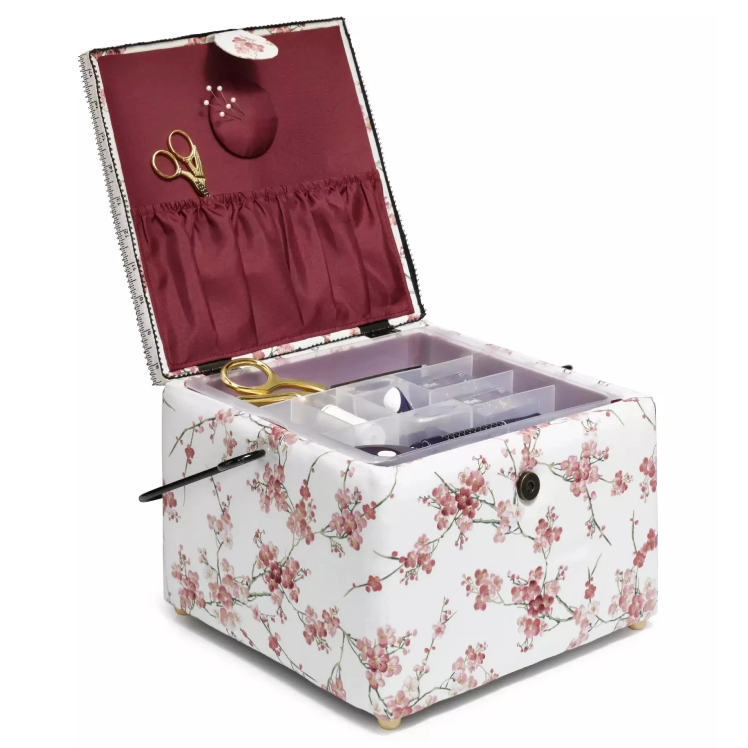 Der große Nähkorb „Nostalgia“ begeistert nicht nur durch seine quadratische Form, sondern vor allem auch durch sein romantisches Design mit edlem Blumendekor.