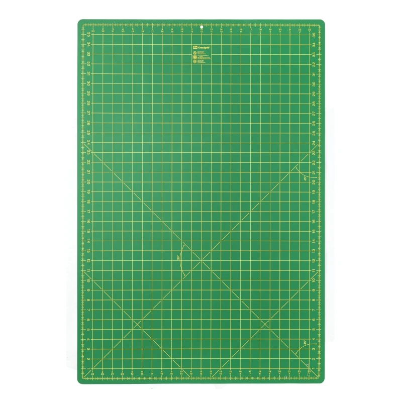 Die spezielle Schneidematte in OLFA-Qualität ist so weich, dass sie die Klinge des Rollschneiders nicht beschädigt, aber auch so fest, dass keine zu tiefen Schnitte entstehen und die Arbeitsoberfläche nicht beschädigt wird. Gleichzeitig ist sie perfekt zum Abmessen der Stoffe, denn die Vorderseite der Schneideunterlage ist mit der cm-Skala, die Rückseite mit inch-Skalierung als Maßeinteilung bedruckt. So sind mit dieser Schneideunterlage auch englische Schnittmuster bequem und ohne Umrechnung realisierbar!