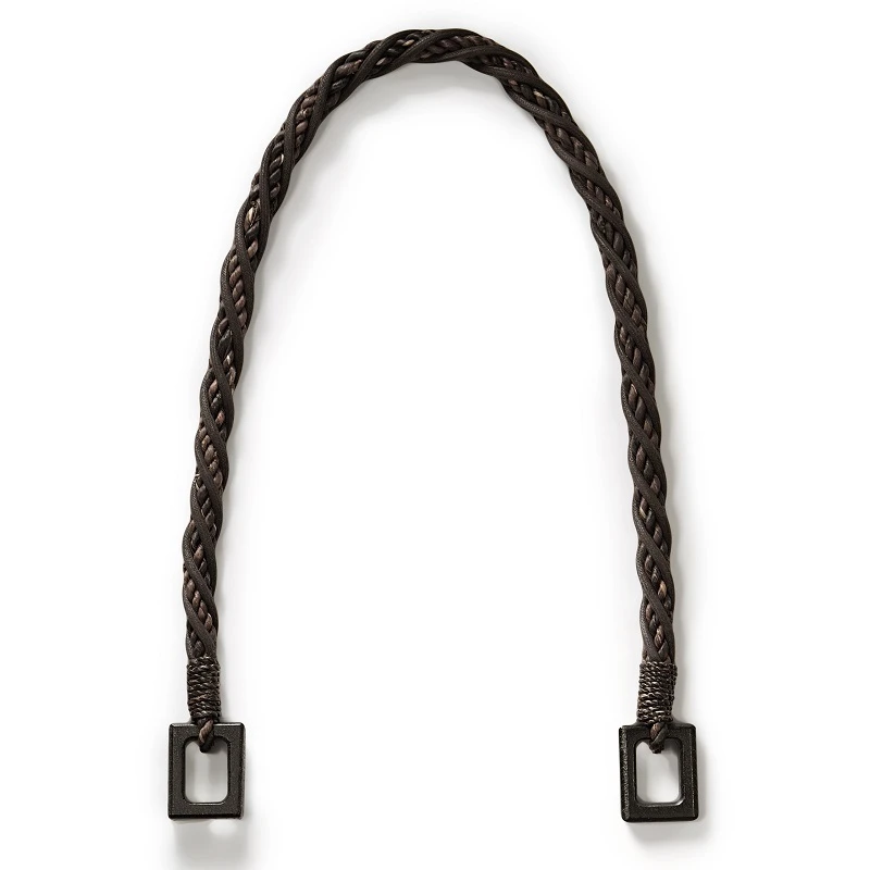 Die langen Taschengriffe “Isabella” strahlen viel Natürlichkeit aus, denn sie sind aus geflochtenen, dunkelbraun-melierten Abaca-Fasern gefertigt. Eine schwarze Baumwollkordel dient zur Verstärkung der Taschengriffe und ist gleichzeitig ein attraktives Deko-Element.