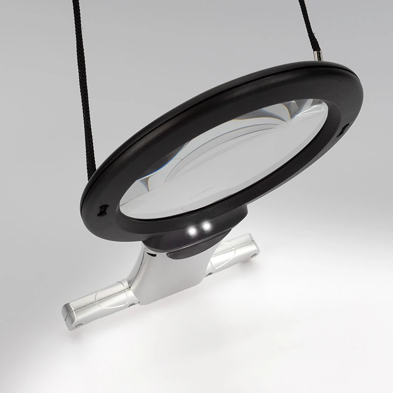 | Mit Umhänge-Kordel – die Lupenleuchte wird am Körper abgestützt | |