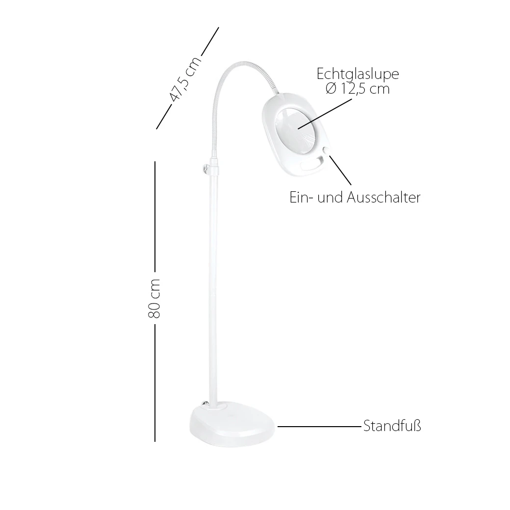 Mit nur wenigen Handgriffen und nur 2 Schrauben verwandeln Sie Ihre Lupenleuchte in die gewünschte Form. Der Ein- und Ausschalter befindet sich direkt an der Lupe.