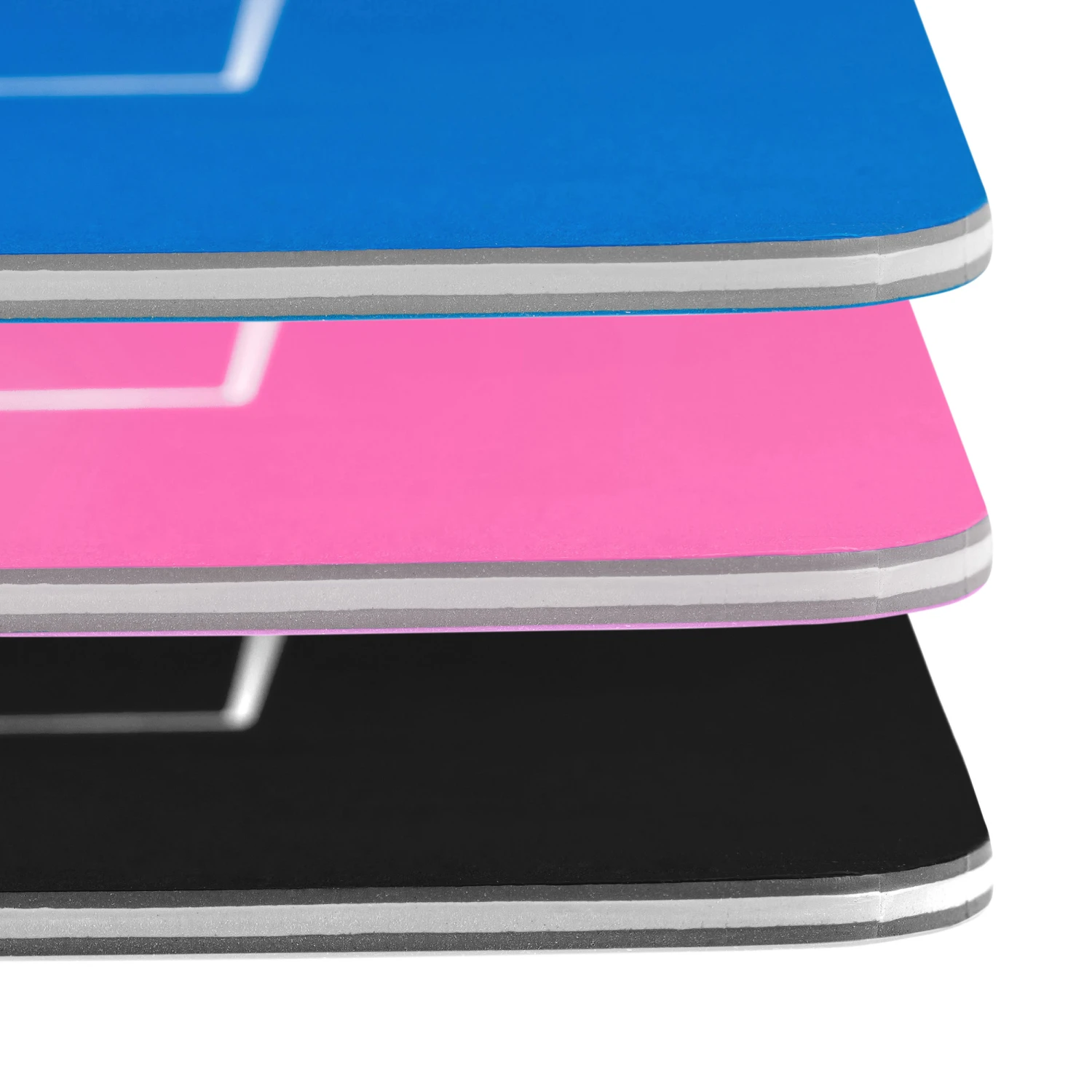 Das mehrlagige, 3,1 mm starke Kunststoffmaterial hat eine harte, mittlere Schicht, die verhindert, dass die Klinge das Material durchschneidet. Die Oberflächenbeschichtungen sind weicher und elastischer. Dadurch nehmen sie den Schnitt auf und mildern ihn ab. Nach dem Schneiden verschließen sich die Schichten wieder und werden fast unsichtbar (selbstheilend). Das schont die Klinge, sodass Sie mit dem Messer / Rollschneider länger arbeiten können.
