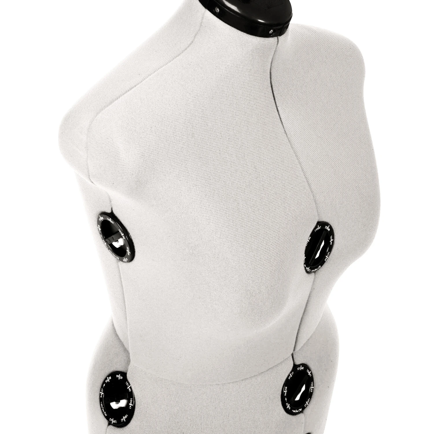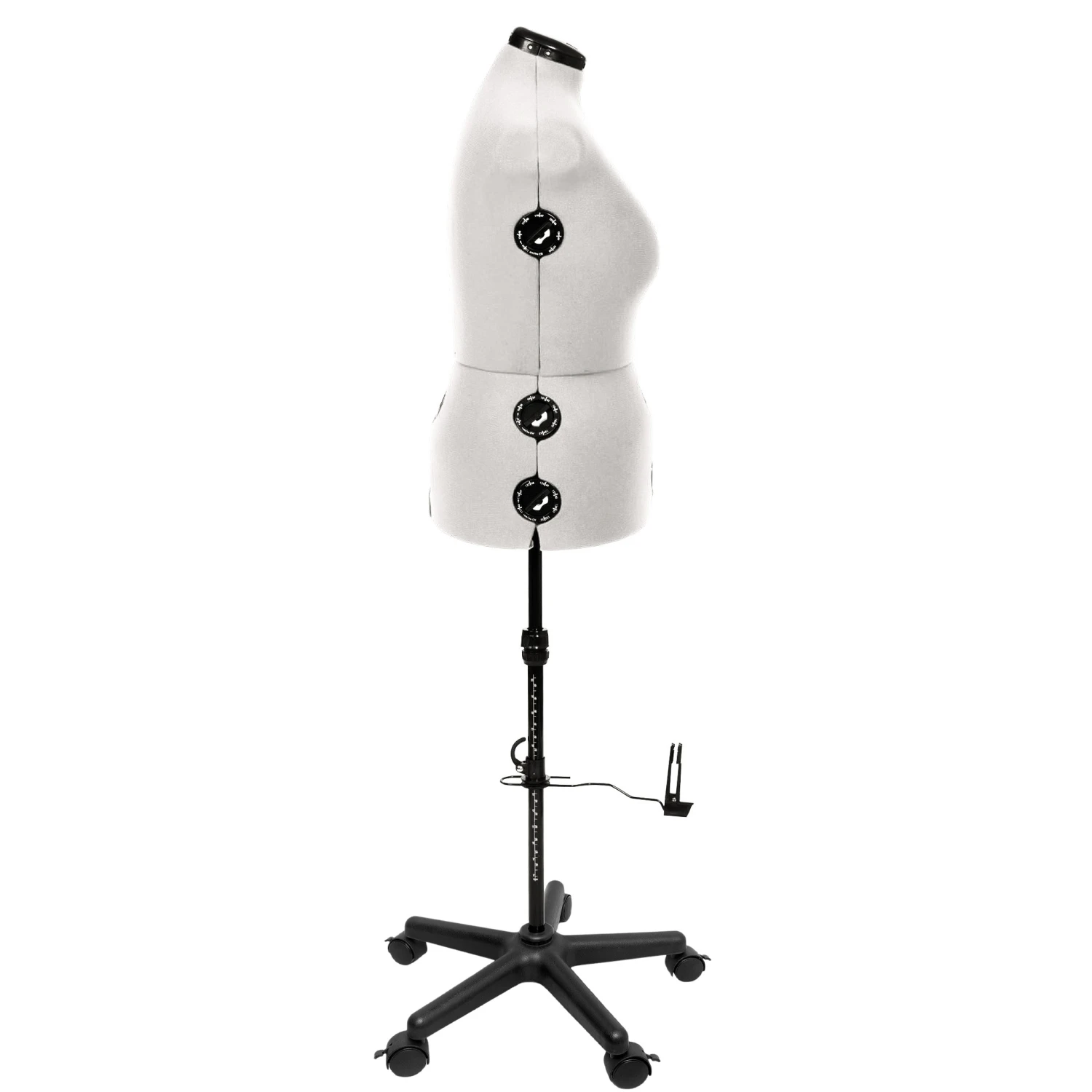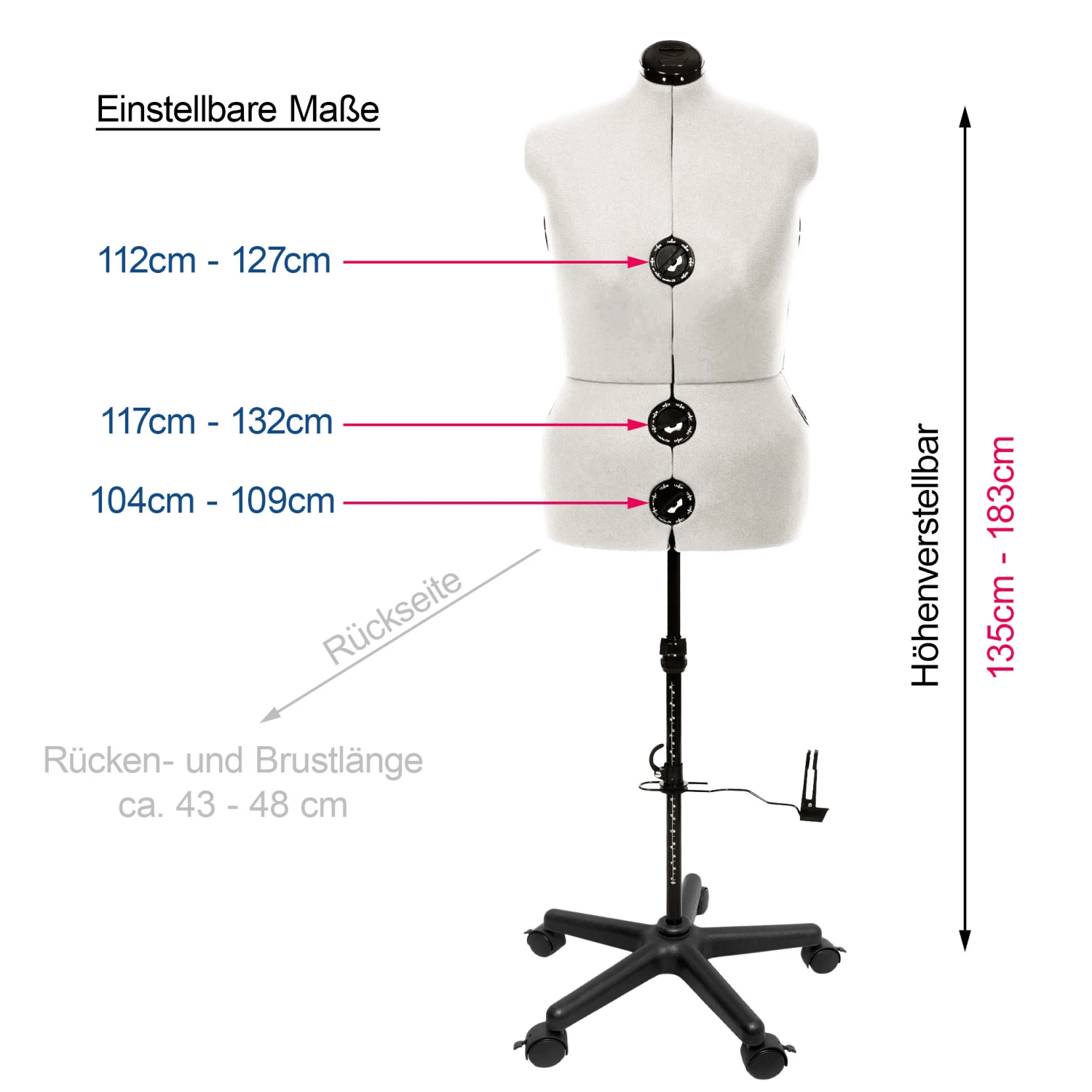 PRAKTISCH: mit 13 Einstellrädern individuell verstellbar an Hals, Taille, Brust und Hüfte, perfekt auch für unterschiedliche Personen/ Kunden/ Freundin oder Familie einsetzbar, integriertes Nadelkissen im Halsbereich, Rockabmesser mit Stecknadelfixierung. |