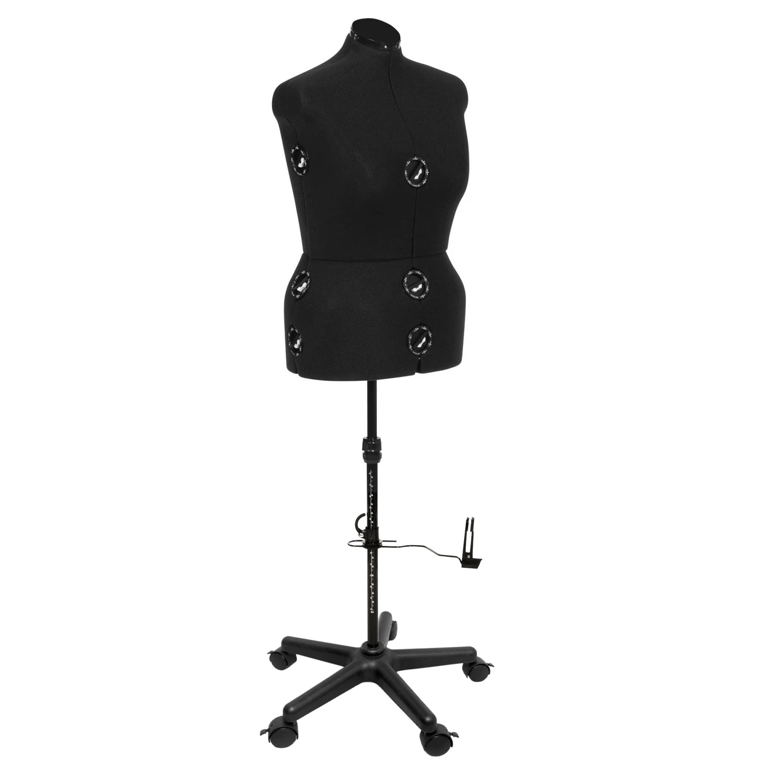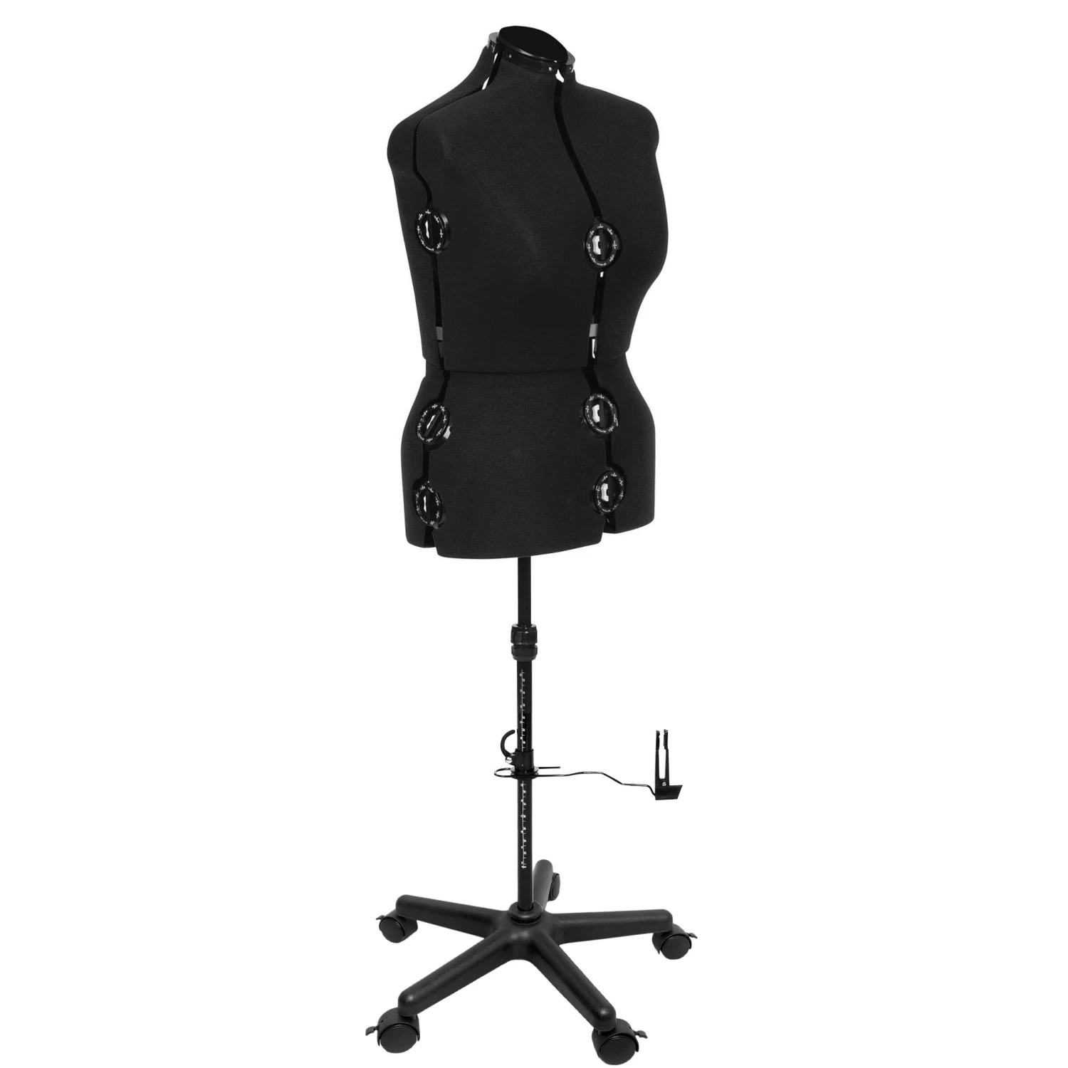 PRAKTISCH: mit 13 Einstellrädern individuell verstellbar an Hals, Taille, Brust und Hüfte, perfekt auch für unterschiedliche Personen/ Kunden/ Freundin oder Familie einsetzbar, integriertes Nadelkissen im Halsbereich, Rockabmesser mit Stecknadelfixierung. |