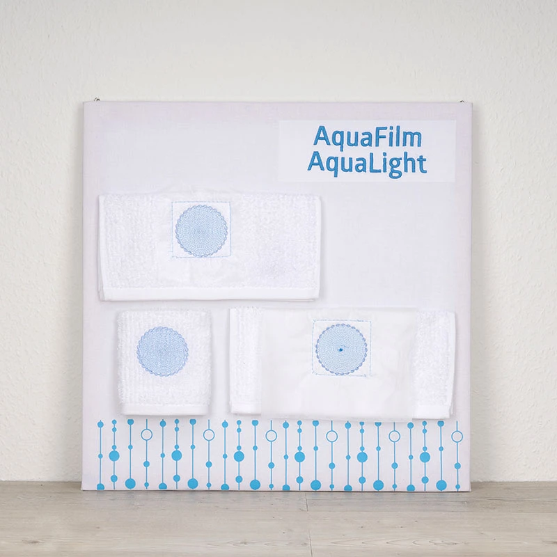 - AquaLight unter den Stoff legen und beides zusammen trommelfest einspannen