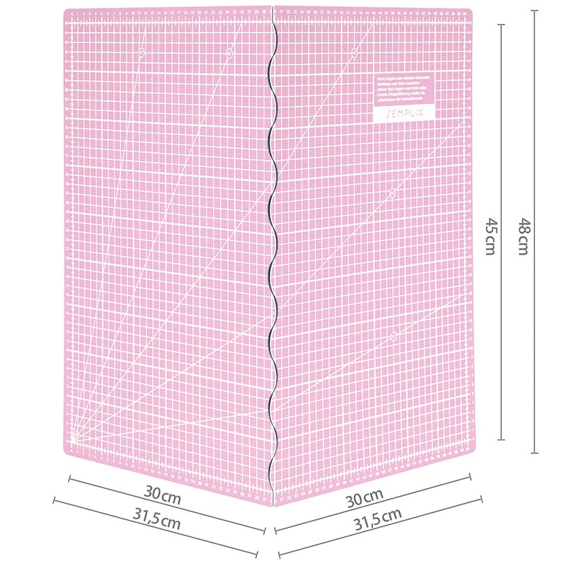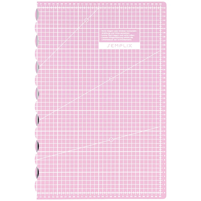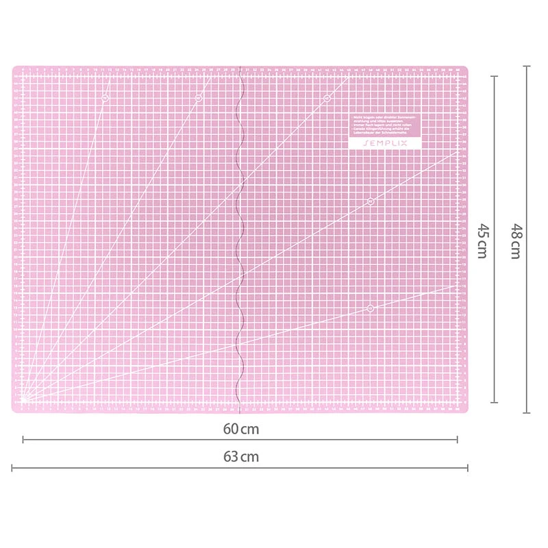 DAS BESONDERE an der Semplix-Schneidematte ist die Randzugabe. Sie sorgt dafür, dass die volle Skala von 60 x 45 cm komplett genutzt werden kann. Die über das Raster hinaus reichenden, umlaufenden Markierungen, ermöglichen das passgenaue Anlegen und Schneiden direkt am Rand.
