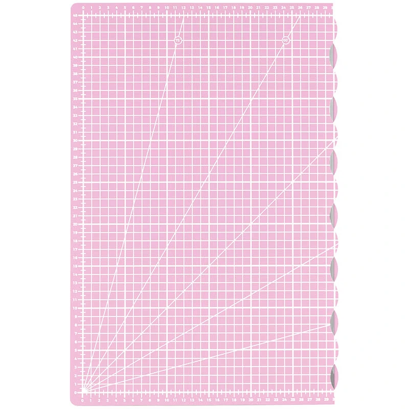 KONTRASTREICHE weiß gedruckte Skalen und Linien sind besonders gut durch transparente Lineale zu erkennen und erleichtern somit das schnelle Maßnehmen und Anlegen beim Schneiden. Die bereits aufgedruckten Hilfslinien in den gängigsten Winkeln sind zum Zuschneiden von vielen Patchwork Formen und bei Bastelarbeiten sehr hilfreich.