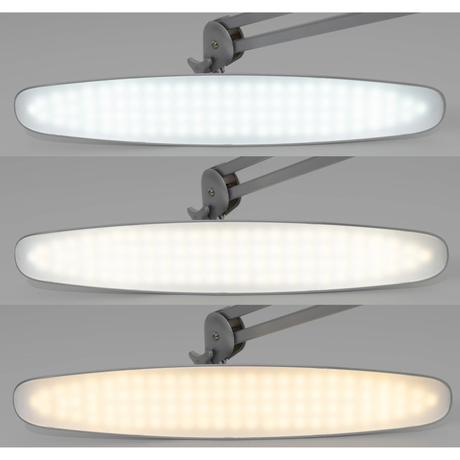 EIGENSCHAFTEN: Mit stabiler Tischklemme, Lampen-Höhe: bis ca. 70 cm, Maße: Arbeitsradius ca. 80 cm, 182 LEDs, 3000K, 4500K bis zu Tageslicht 6000K, 2000 Lumen, dimmbar, AC100 – 240 Volt, 50 Hz, 20 Watt, Lebensdauer bis 50000 h, 1,45 m Netzkabel