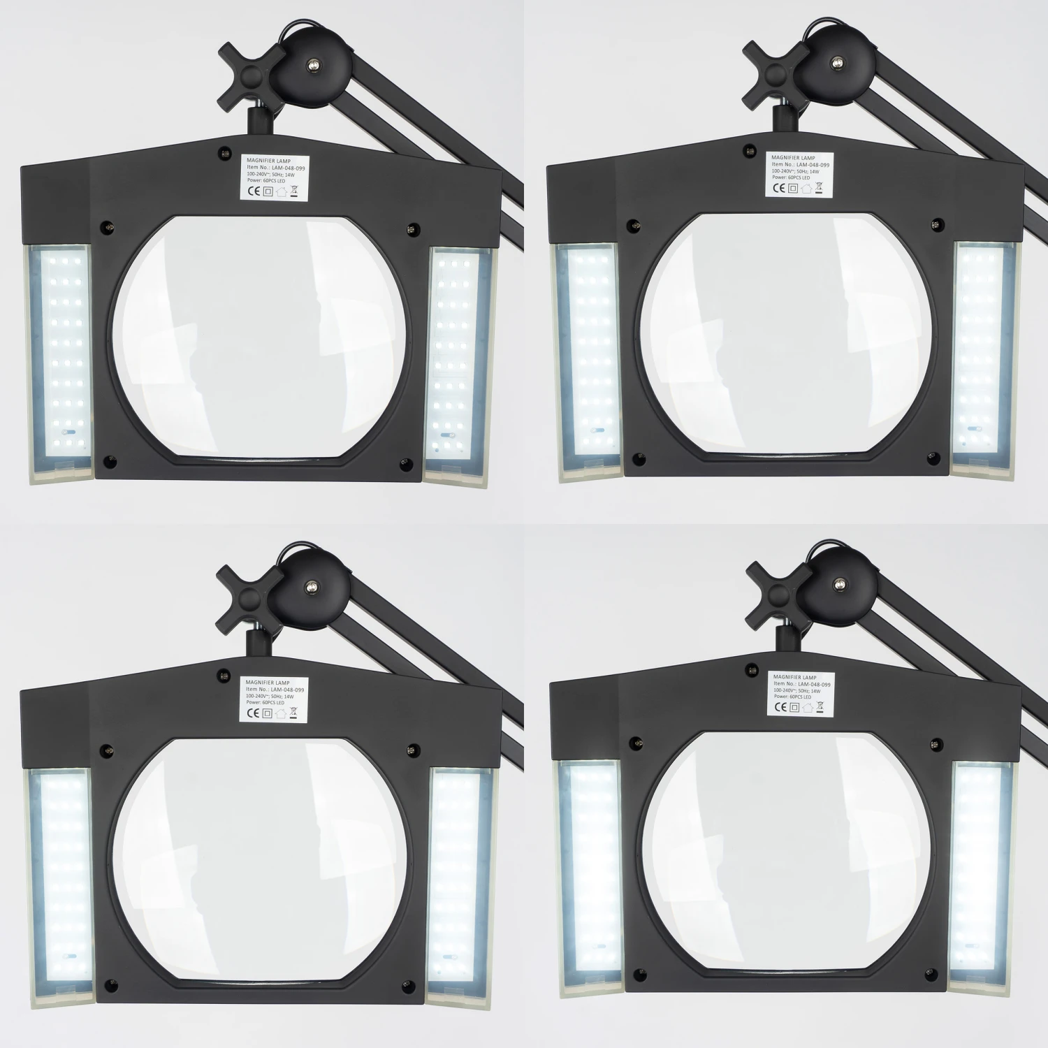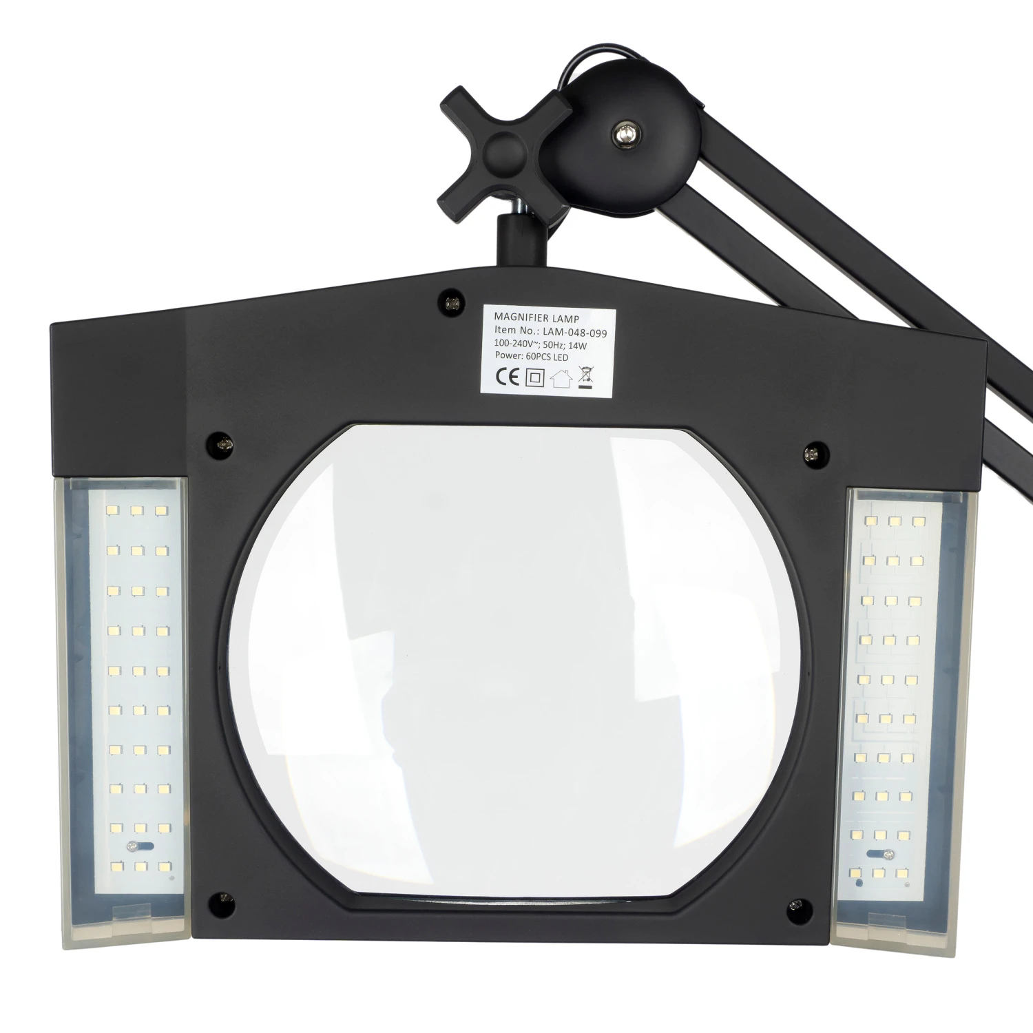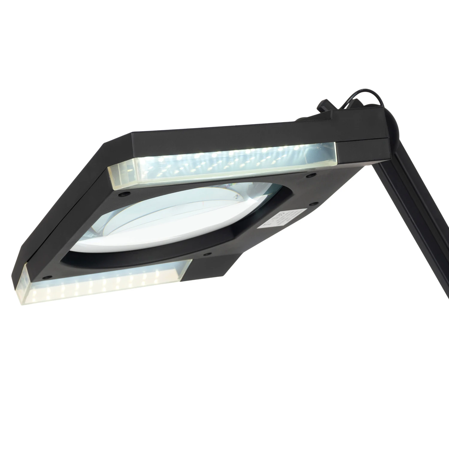 EIGENSCHAFTEN: Lampen-Höhe: bis ca. 67 cm, Echtglaslinse 189 x 157 mm, 3D -1,75-fache Vergrößerung, 60 LEDs, individuell dimmbar, Tageslicht 6000 Kelvin, 1200 Lumen, AC100 – 240 Volt, 50 Hz, 12 Watt, Lebensdauer bis 50000 h, 1,45 m Netzkabel