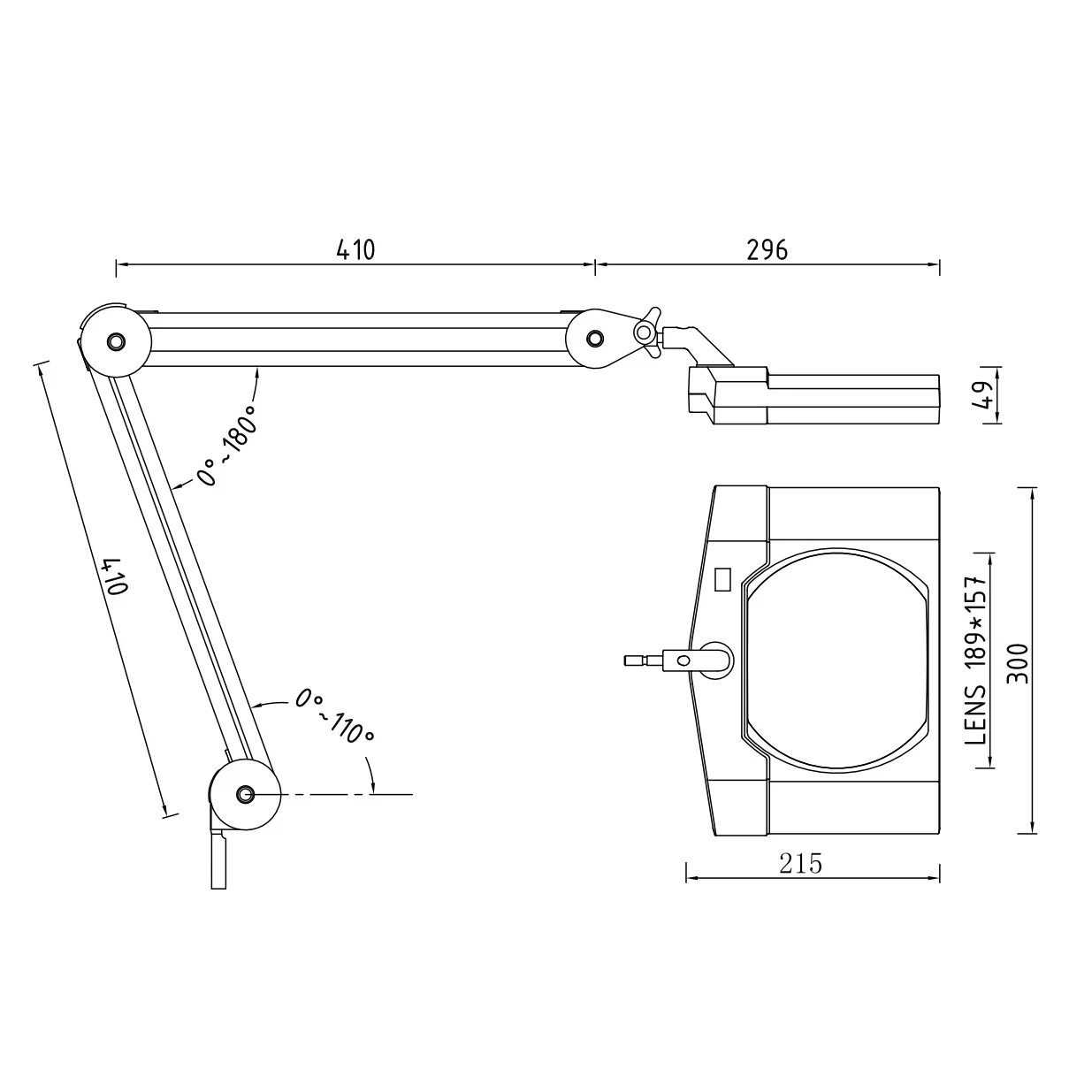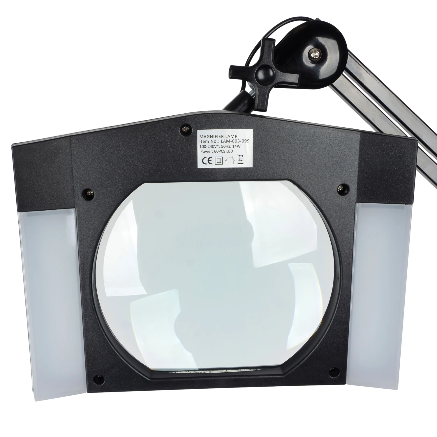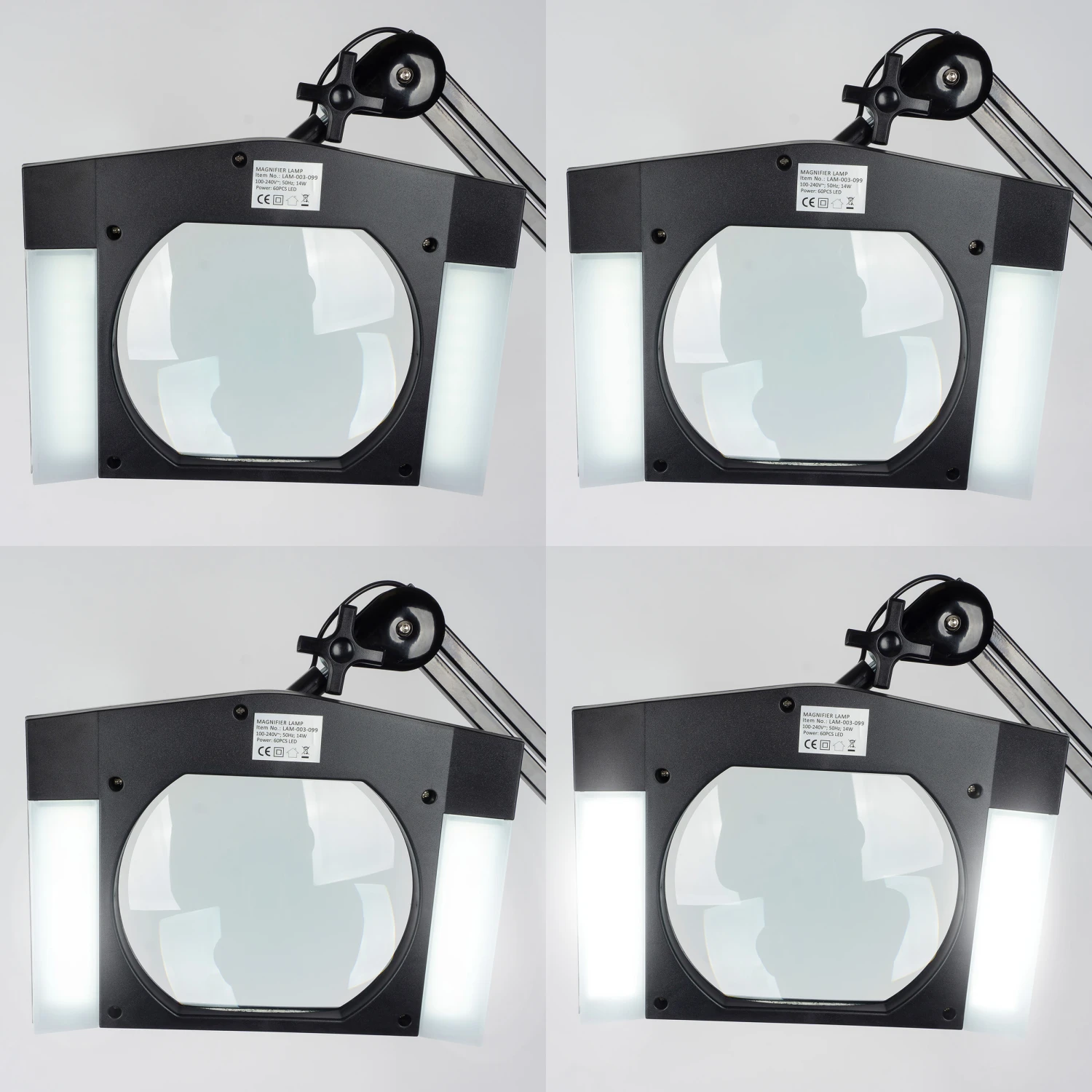 EIGENSCHAFTEN: Lampen-Höhe: bis ca. 67 cm, Echtglaslinse 189 x 157 mm, 3D -1,75-fache Vergrößerung, 60 LEDs, individuell dimmbar, Tageslicht 6000 Kelvin, 1200 Lumen, AC100 – 240 Volt, 50 Hz, 12 Watt, Lebensdauer bis 50000 h, 1,45 m Netzkabel