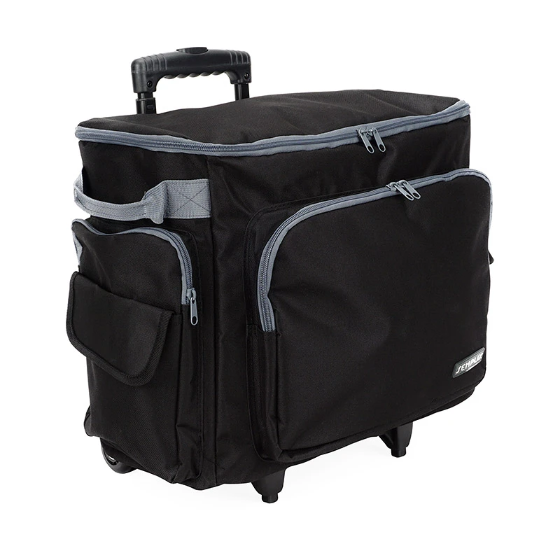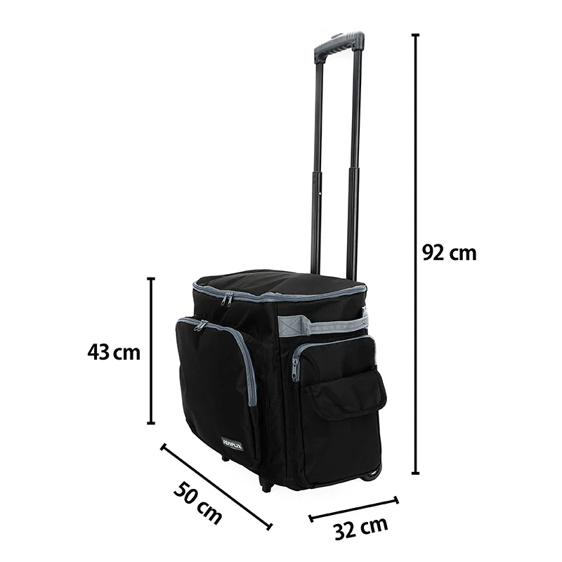 DETAILS: Trolley Außen-Maße inkl. Rollen und Außentaschen (BxHxT): 50 x 43 x 32 cm, Hauptfach-Innenmaße für Nähmaschine: ca.40 x 32 x 20 cm, Frontfach: 34 x 27 x 4,5 cm mit 2-Wege-RV, seitlich je 1 RV-Fach ca.18 x 26 x 2,5 cm, darauf je 1 Steckfach ca.18 x 19 cm