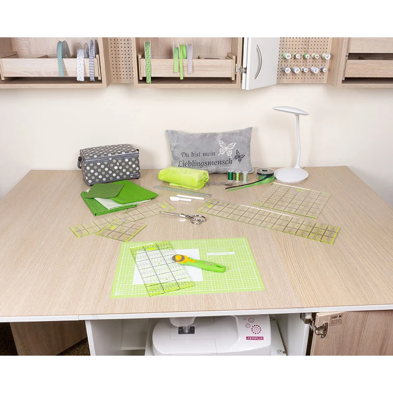 KONTRASTREICHE weiß gedruckte Skalen und Linien sind besonders gut durch transparente Lineale zu erkennen und erleichtern somit das schnelle Maßnehmen und Anlegen beim Schneiden. Die bereits aufgedruckten Hilfslinien in den gängigsten Winkeln sind zum Zuschneiden von vielen Patchwork Formen und bei Bastelarbeiten sehr hilfreich.