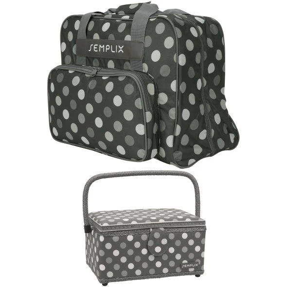 Semplix Polka Dots Nähmaschinentasche mit Nähkorb L (anthrazit/grau)