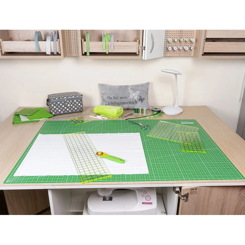 QUALITÄT: Das 3-lagige, stabile und selbstheilende Material der Matte schützt Arbeitstisch und Klinge, hat ein niedriges Gewicht und ist langlebig. Die seidenmatte Oberfläche ohne störende Glanzstellen sorgt dafür, dass der darauf liegende Stoff deutlich weniger rutscht. |