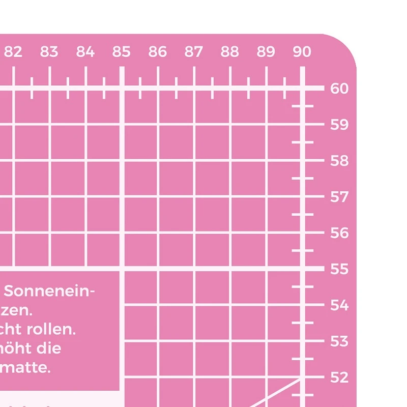 KONTRASTREICHE weiß gedruckte Skalen und Linien sind besonders gut durch transparente Lineale zu erkennen und erleichtern somit das schnelle Maßnehmen und Anlegen beim Schneiden. Die bereits aufgedruckten Hilfslinien in den gängigsten Winkeln sind zum Zuschneiden von vielen Patchwork Formen und bei Bastelarbeiten sehr hilfreich.