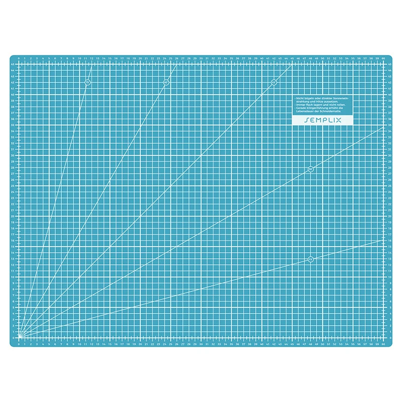 KONTRASTREICHE weiß gedruckte Skalen und Linien sind besonders gut durch transparente Lineale zu erkennen und erleichtern somit das schnelle Maßnehmen und Anlegen beim Schneiden. Die bereits aufgedruckten Hilfslinien in den gängigsten Winkeln sind zum Zuschneiden von vielen Patchwork Formen und bei Bastelarbeiten sehr hilfreich.