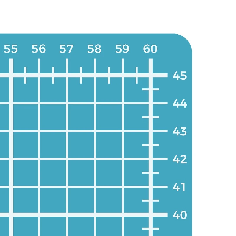 DAS BESONDERE an der SEMPLIX-Schneidematte ist die Randzugabe. Sie sorgt dafür, dass die volle Skala von 60 x 45 cm / 24 x 18 inch komplett genutzt werden kann. Die über das Raster hinaus reichenden, umlaufenden Markierungen, ermöglichen das passgenaue Anlegen und Schneiden direkt am Rand.