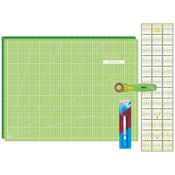 Semplix Schneidematten-Set A2 hellgrün/grün + GRATIS Prym Aqua-Trickmarker