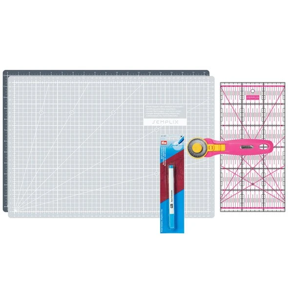Semplix Schneidematten-Set A3 grau/pink + GRATIS Prym Aqua-Trickmarker