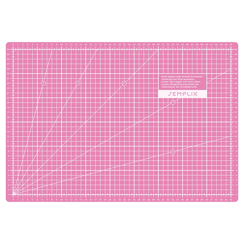 KONTRASTREICHE weiß gedruckte Skalen und Linien sind besonders gut durch transparente Lineale zu erkennen und erleichtern somit das schnelle Maßnehmen und Anlegen beim Schneiden. Die bereits aufgedruckten Hilfslinien in den gängigsten Winkeln sind zum Zuschneiden von vielen Patchwork Formen und bei Bastelarbeiten sehr hilfreich.