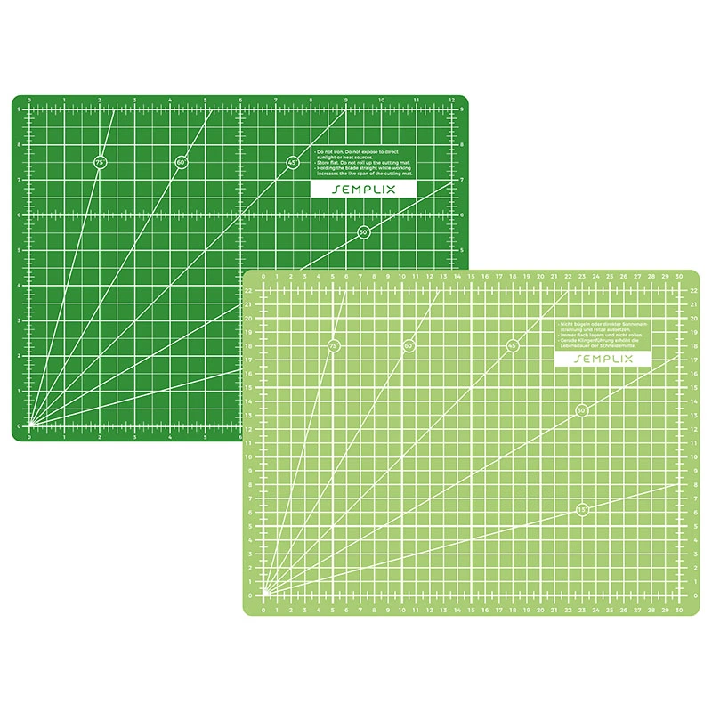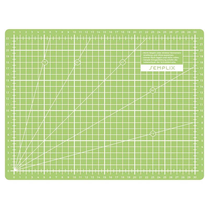 DAS BESONDERE an der SEMPLIX-Schneidematte ist die Randzugabe. Sie sorgt dafür, dass die volle Skala von 30 x 22 cm / 12 x 9 inch komplett genutzt werden kann. Die über das Raster hinaus reichenden, umlaufenden Markierungen, ermöglichen das passgenaue Anlegen und Schneiden direkt am Rand.