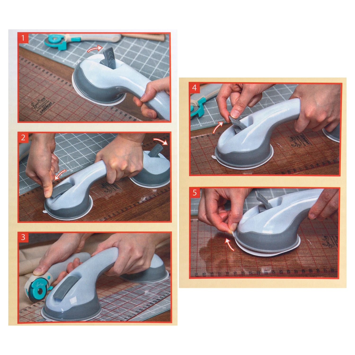 Bietet Stabilität für genaues Schneiden und Markieren und schützt die Finger beim Schneiden. Hilft beim Anheben und Verschieben von Linealen und Schablonen, sicher und einfach zu bedienen mit zwei starken Saugnäpfen und Hebeln. Der ergonomische Komfortgriff eignet sich sowohl für Linkshänder als auch für Rechtshänder. Geeignet für die Verwendung mit Schablonen und Linealen mit einem Durchmesser von mindestens 9,8 cm. Zur Verwendung auf einer ebenen Fläche und wischen Sie die Lineale und die Saugnäpfe vor dem Gebrauch ab.