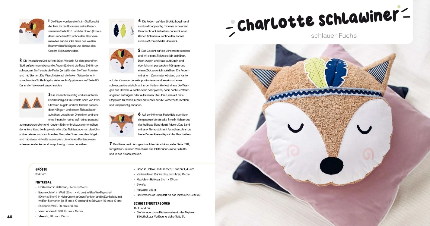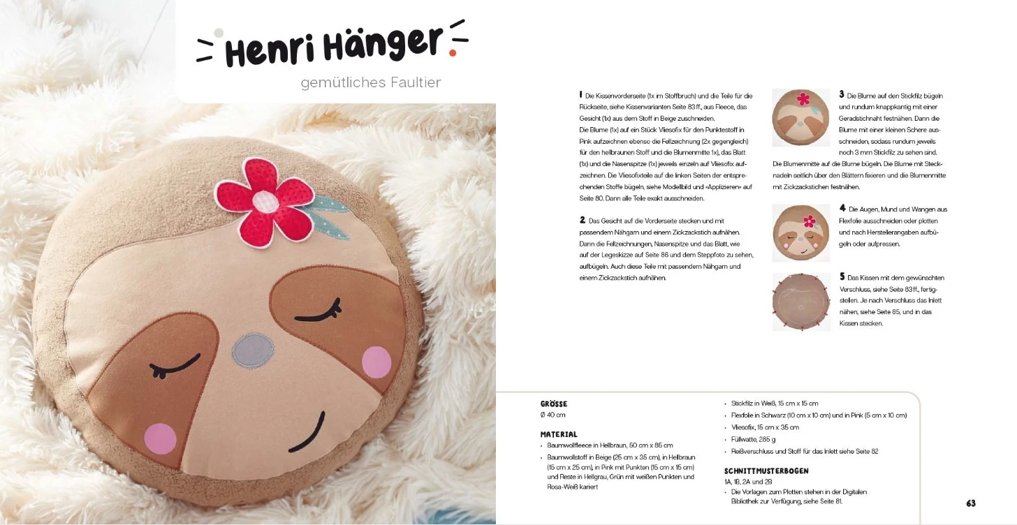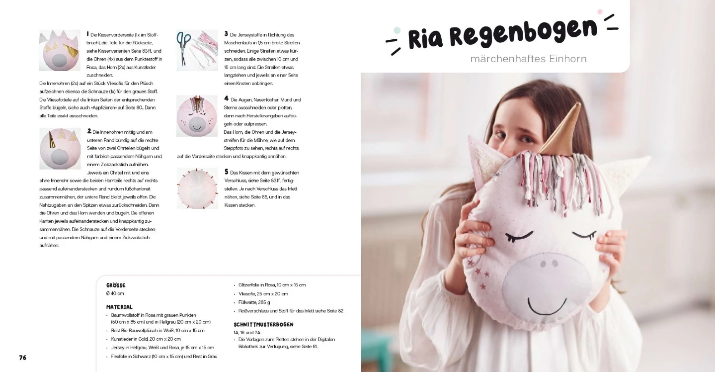 Jedes Kissen kann in drei verschiedenen Größen genäht werden: perfekt für jedes Alter und jedes Bedürfnis. Die Kissen eignen sich als gemütlicher Begleiter für unterwegs, sind aber auch zuhause dekorativ und eine perfekte Geschenkidee.