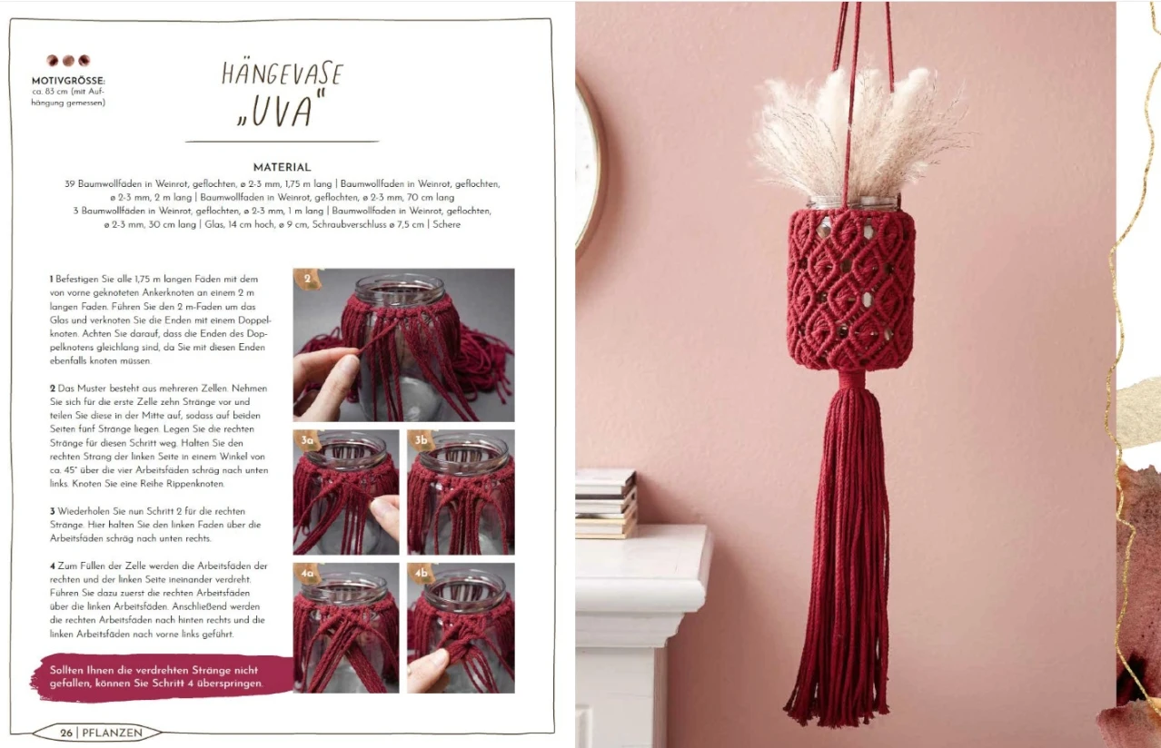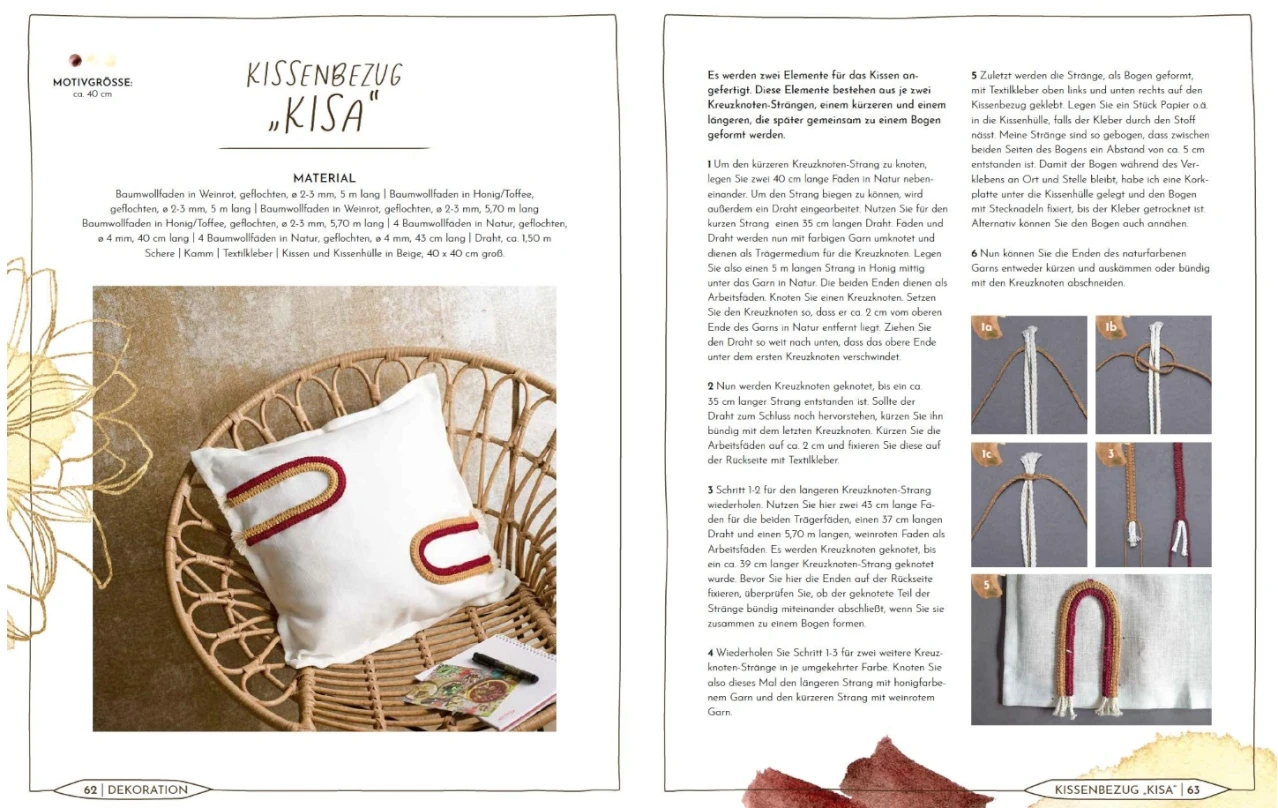 Bringen Sie Gemütlichkeit in Ihr Zuhause! Sanfte, natürliche Erdtöne und schöne, geknüpfte Wandbehänge oder ein schönes Makramee-Kissen machen Ihre vier Wände zu einer traumhaften Wohlfühl-Oase. Und das beste daran? Es ist alles selbstgemacht! Gönnen Sie sich mit dem Trend-hobby Makramee die verdiente Auszeit und lassen Sie beim Knüpfen die Gedanken schweifen. Ob Sie nun schon Fortgeschritten sind oder ganz vorne anfangen. Dieses Buch von @yeah_handmade liefert viele tolle Knüpfprojekte für Wand, Tisch, Sofa und sogar kleine Accessoires, die man perfekt verschenken kann. Dank bebilderter Schritt-für-Schritt-Anleitung gelingt jedes Projekt im Nu.